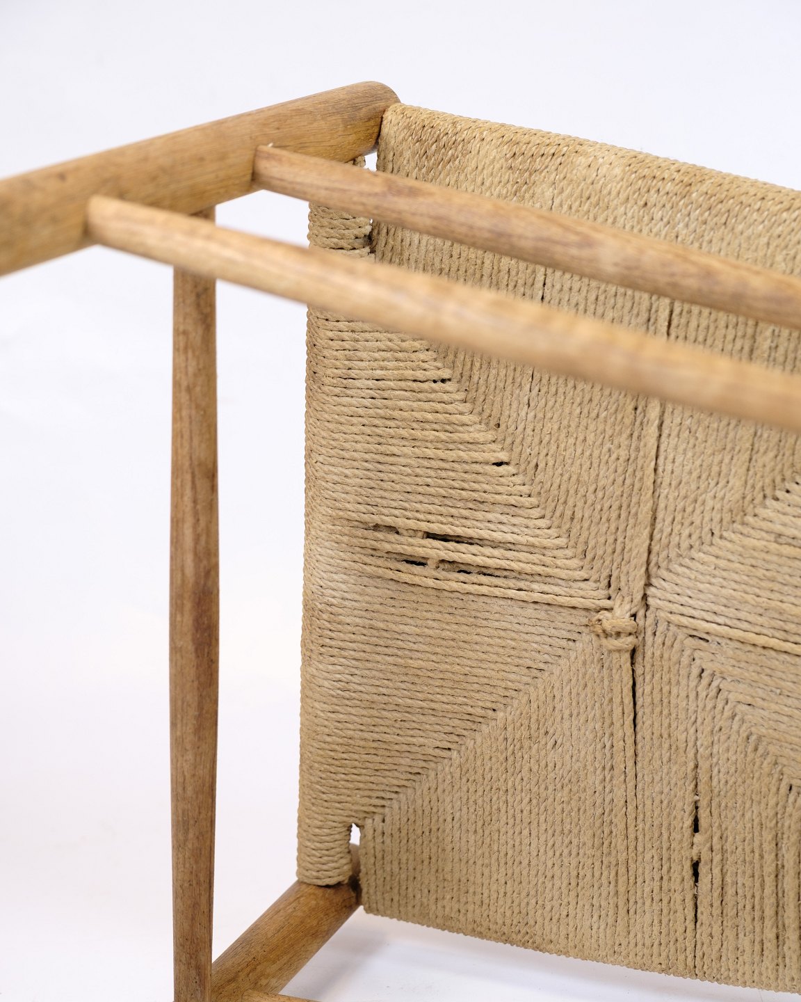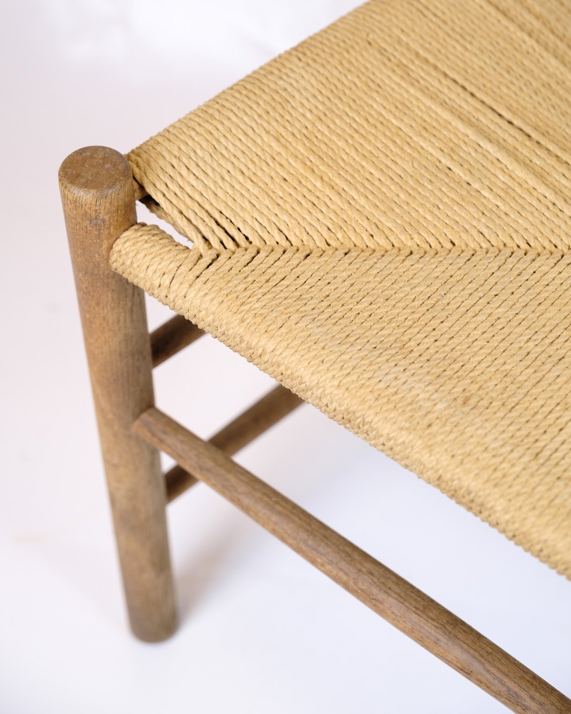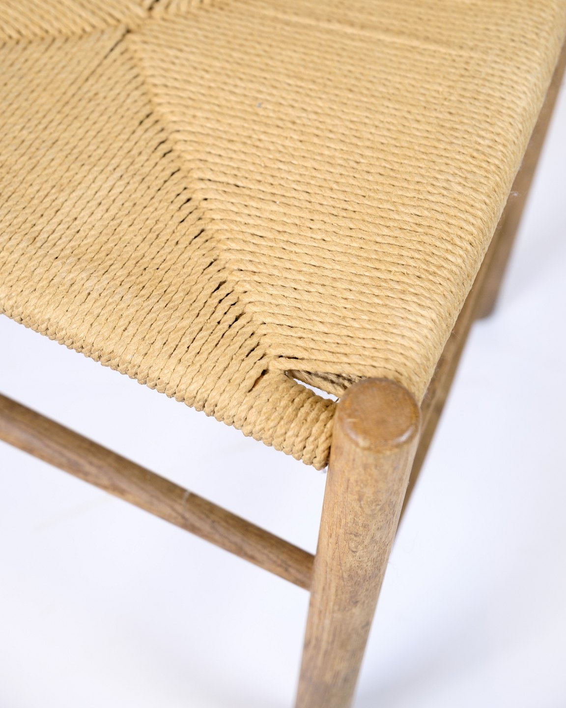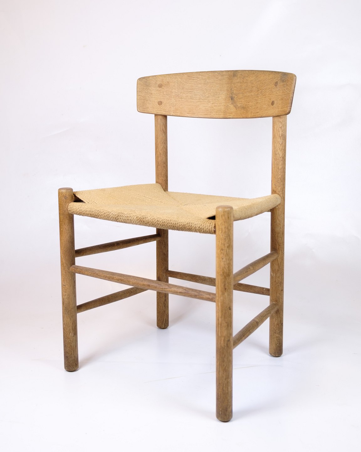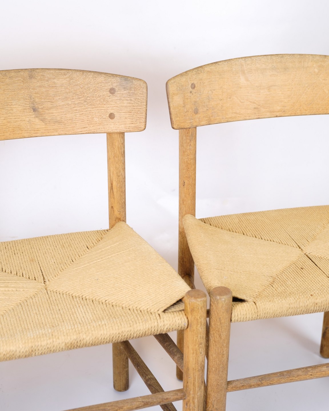 Set of two dining chairs, model J39, also known as the Folkestolen. Designed by Børge Mogensen in 1947 and produced by FDB Møbler. The chairs are made of solid oak with seats in paper yarn weave, which provides a robust and comfortable seating experience.