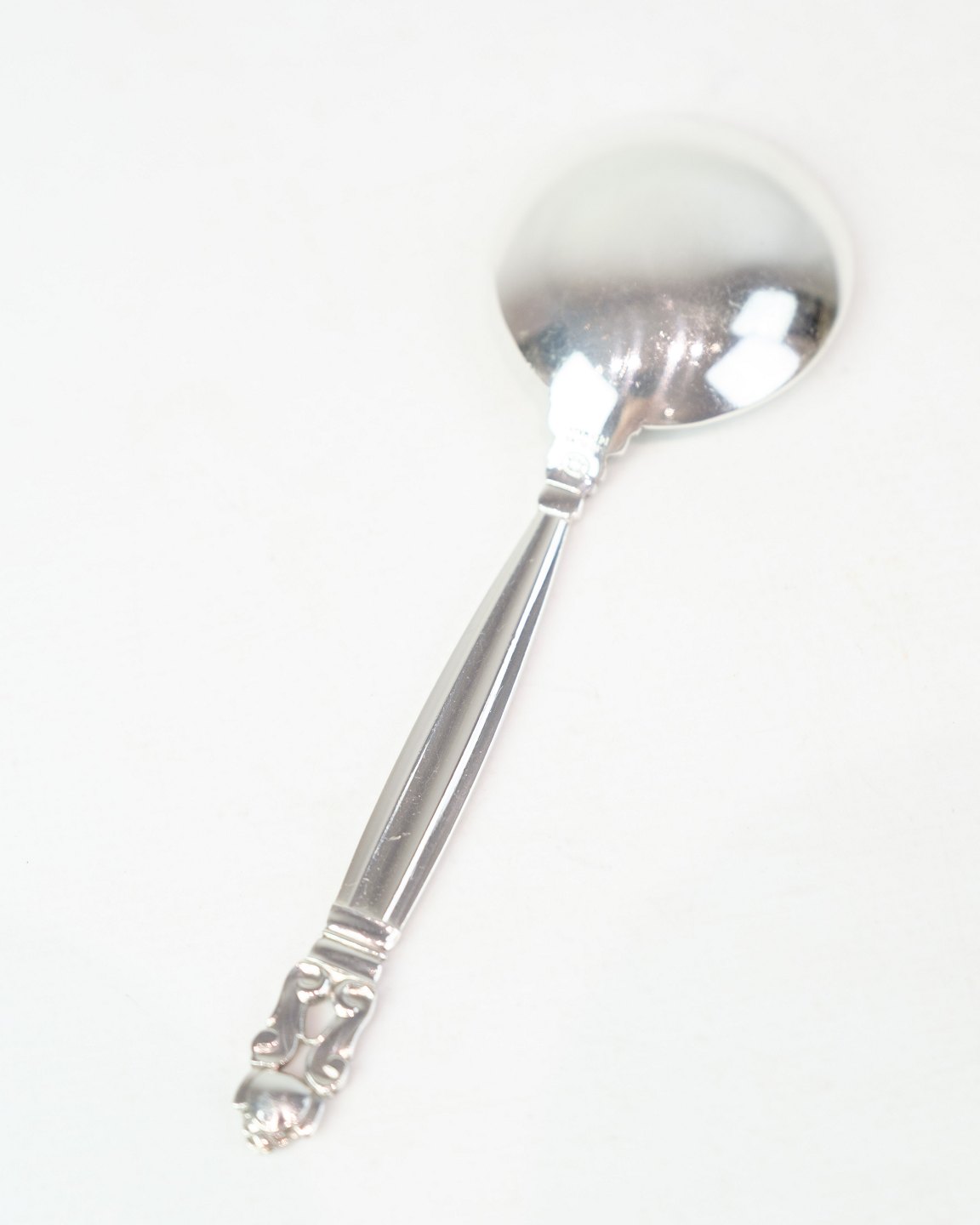 Georg Jensen small silver bouillon spoon, King pattern. Designed by Johan Rohde in 1915. Length 13 cm. Classic Danish silverwork.