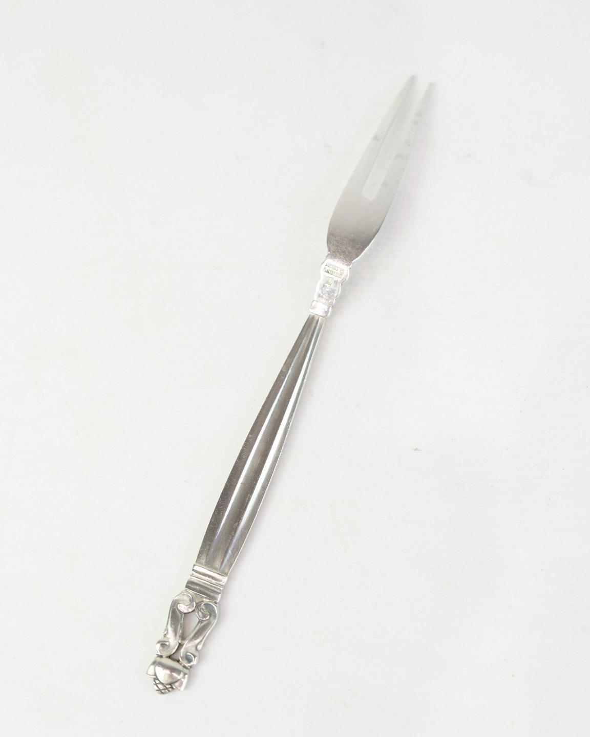 Georg Jensen pålægs-/stegegaffel i Konge mønster. Sterling sølv, design af Johan Rohde 1915. Længde 16,5 cm.