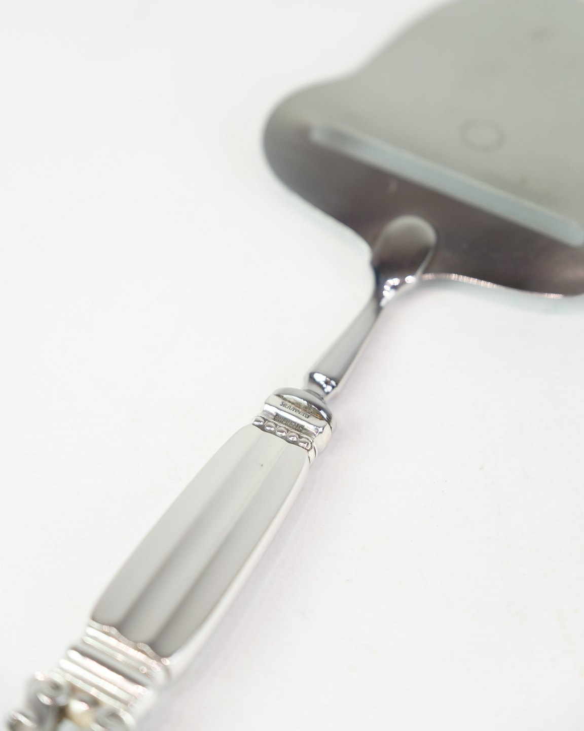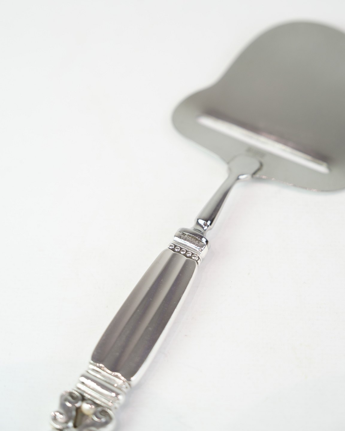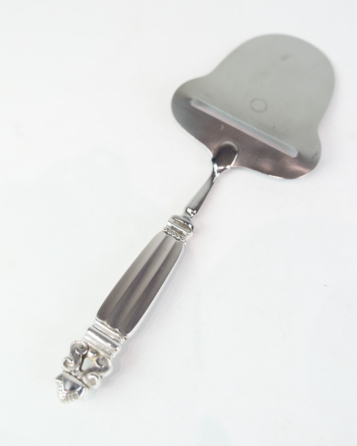 Georg Jensen ostehøvl i Konge mønster. Sterling sølv og rustfrit stål, produceret efter 1945. Længde 20,9 cm.