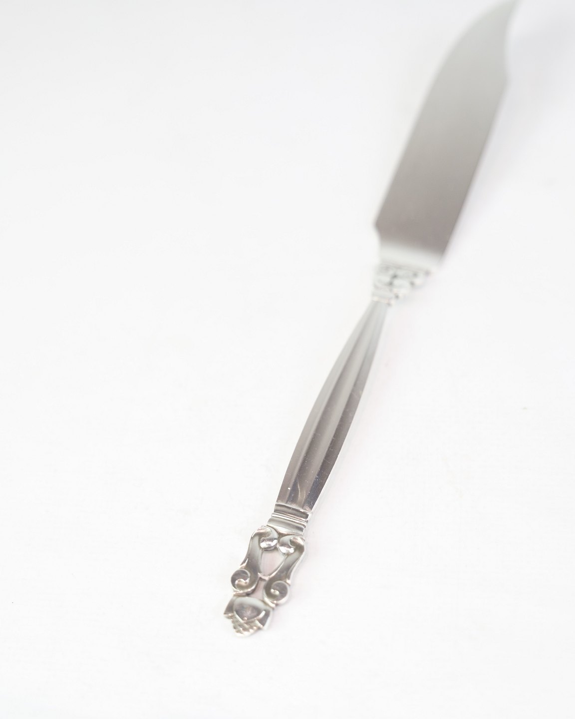 Georg Jensen fiskekniv i sterling sølv. Konge mønster, design af Johan Rohde 1915. Model No. 62. Længde 20,5 cm.