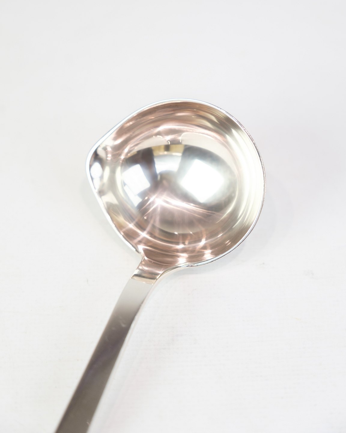Evald Nielsen serveringsske og sauceske i ægte sølv. Congo mønster No. 32. Længde 23 og 18 cm. Klassisk dansk sølvarbejde.