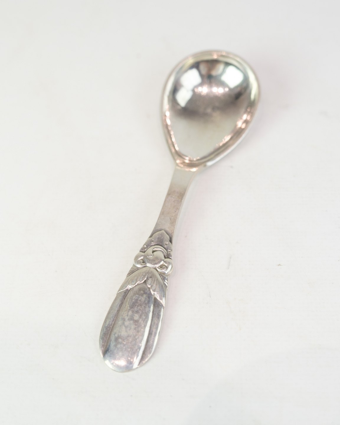 Evald Nielsen caviar jar in genuine silver. Hammered pattern, Model No. 16. Length 14 cm. Classic Danish silverwork.