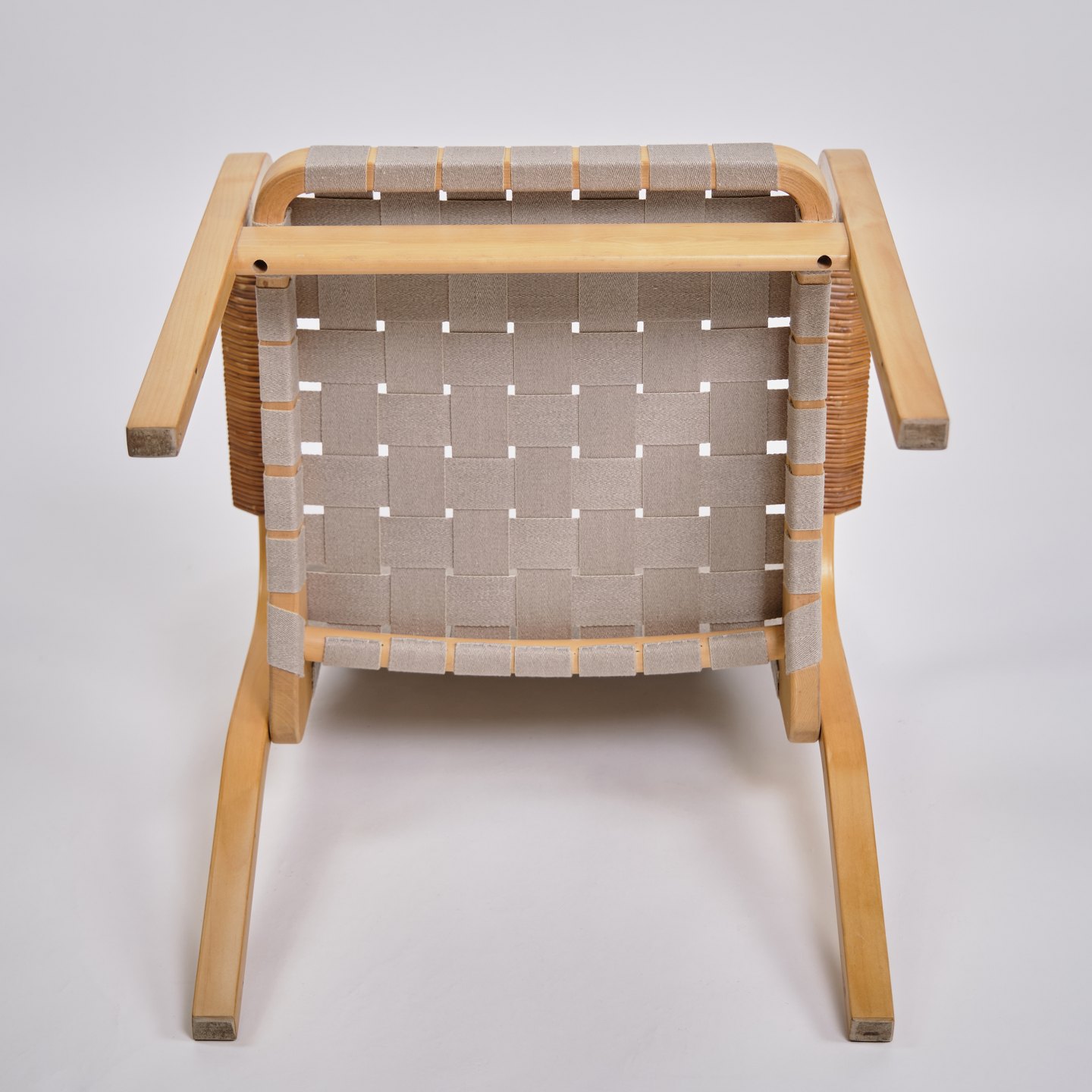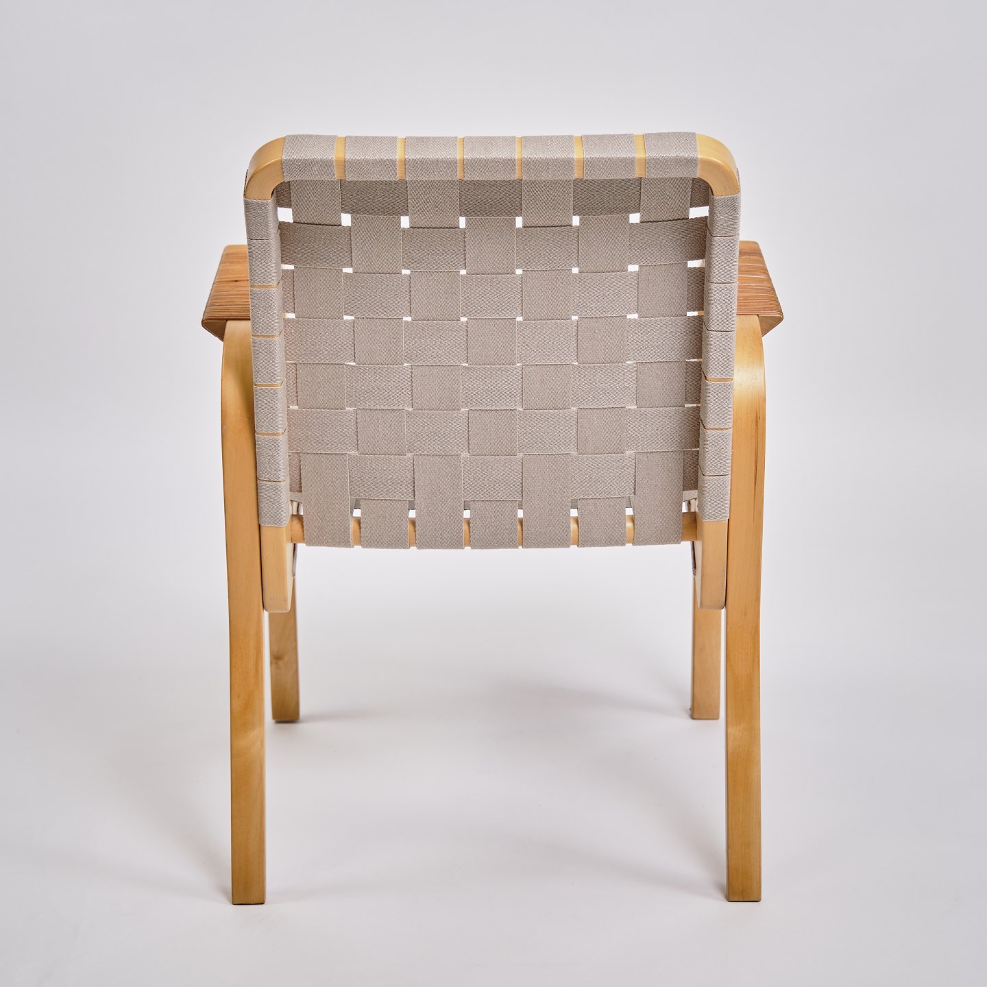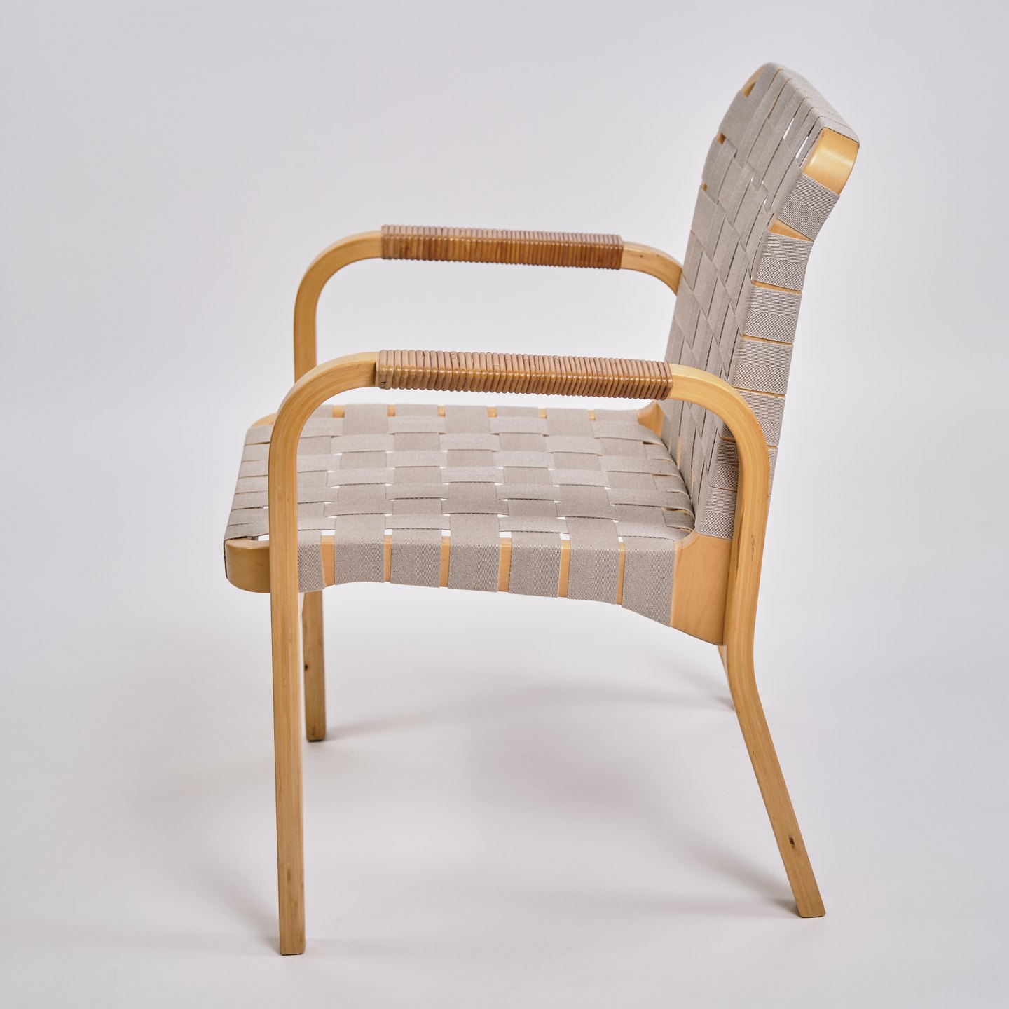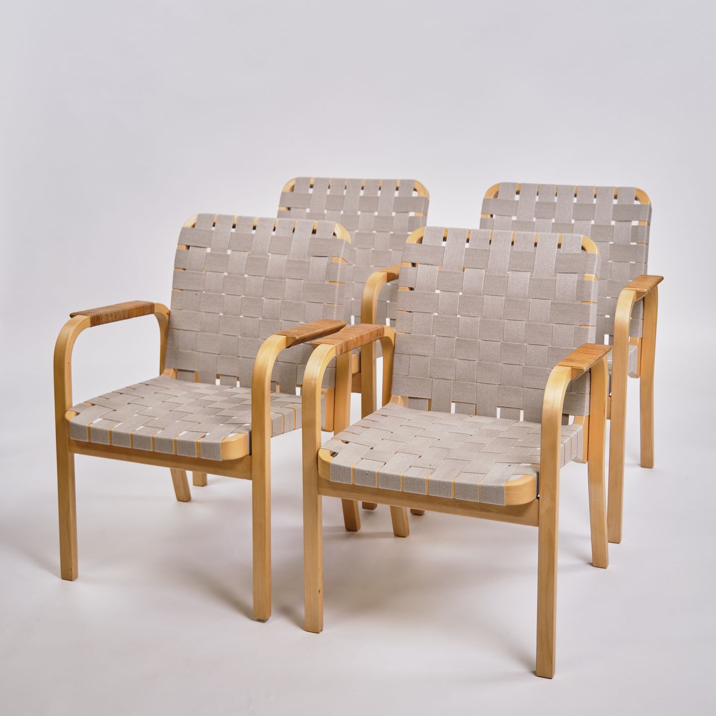 SolgtSæt af fire Alvar Aalto armstole, model 45. Birketræ og rattan. Artek, Finland. H: 79 cm, B: 60 cm, D: 49,5 cm, SH: 41,5 cm. Klassisk nordisk design.