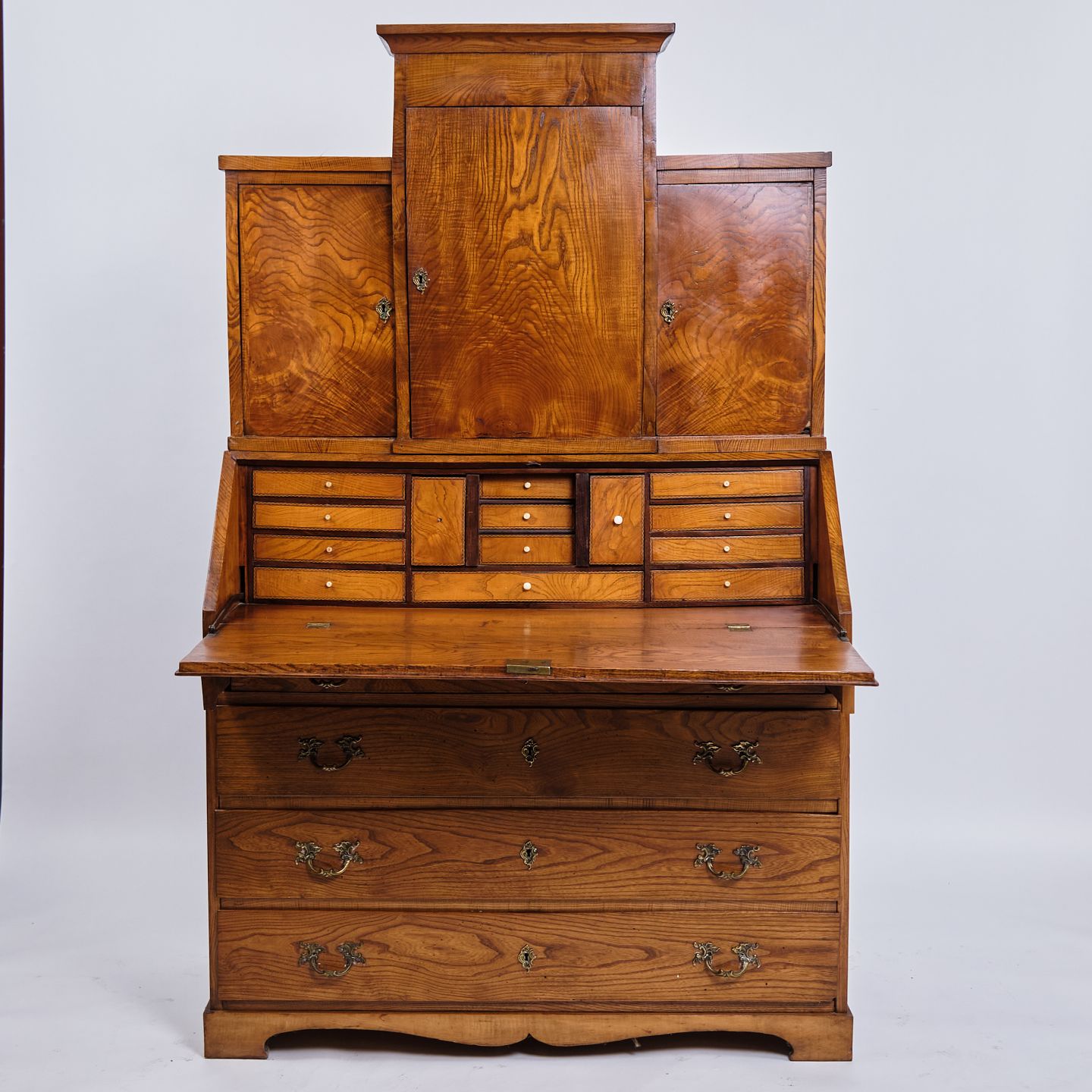 Antikt chatol i Louis Seize-stil fra ca. 1840. Egetræ med messingbeslag. H: 190 cm, B: 117 cm, D: 55 cm. Klassisk 1800-tals møbelhåndværk.