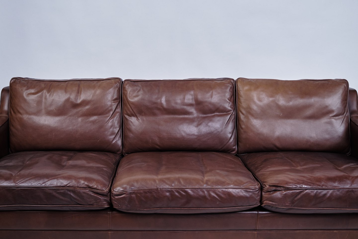 Dansk 3-personers sofa i brunt læder fra 1970’erne. Klassisk dansk design.