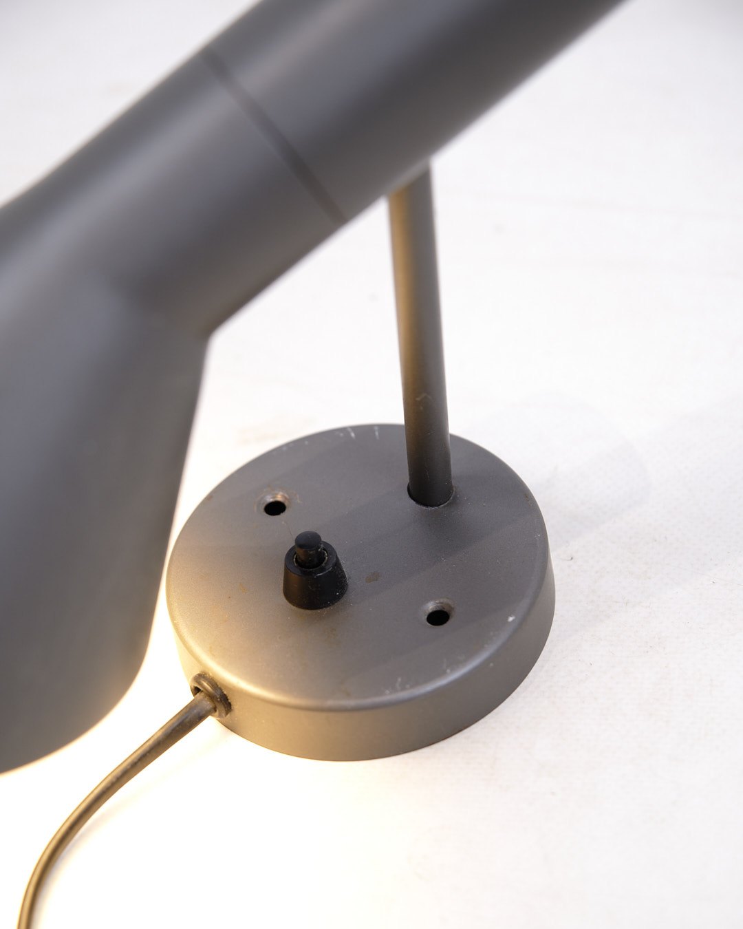 Sæt af to AJ væglamper i lys grå, designet af Arne Jacobsen i 1960’erne og produceret af Louis Poulsen. Lamperne er udført i pulverlakeret stål og har det karakteristiske skærmformede design, der giver både direkte og retningsbestemt lys.
