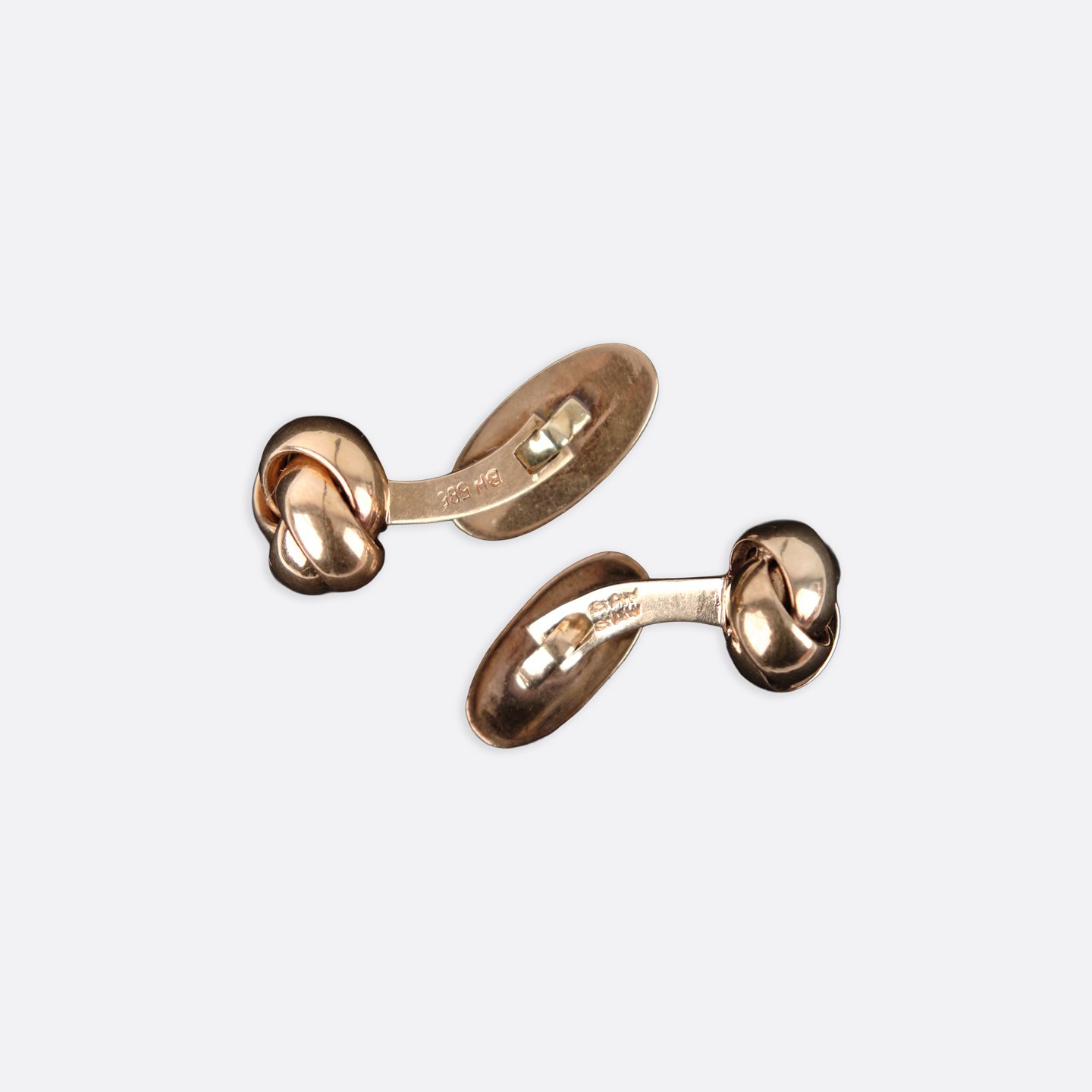 A pair of cufflinks in 14-carat gold featuring a classic knot motif, crafted by Bernhard Hertz, Copenhagen (1893–1937). Marked BH 585. An elegant and period-typical piece from a renowned Danish maker.