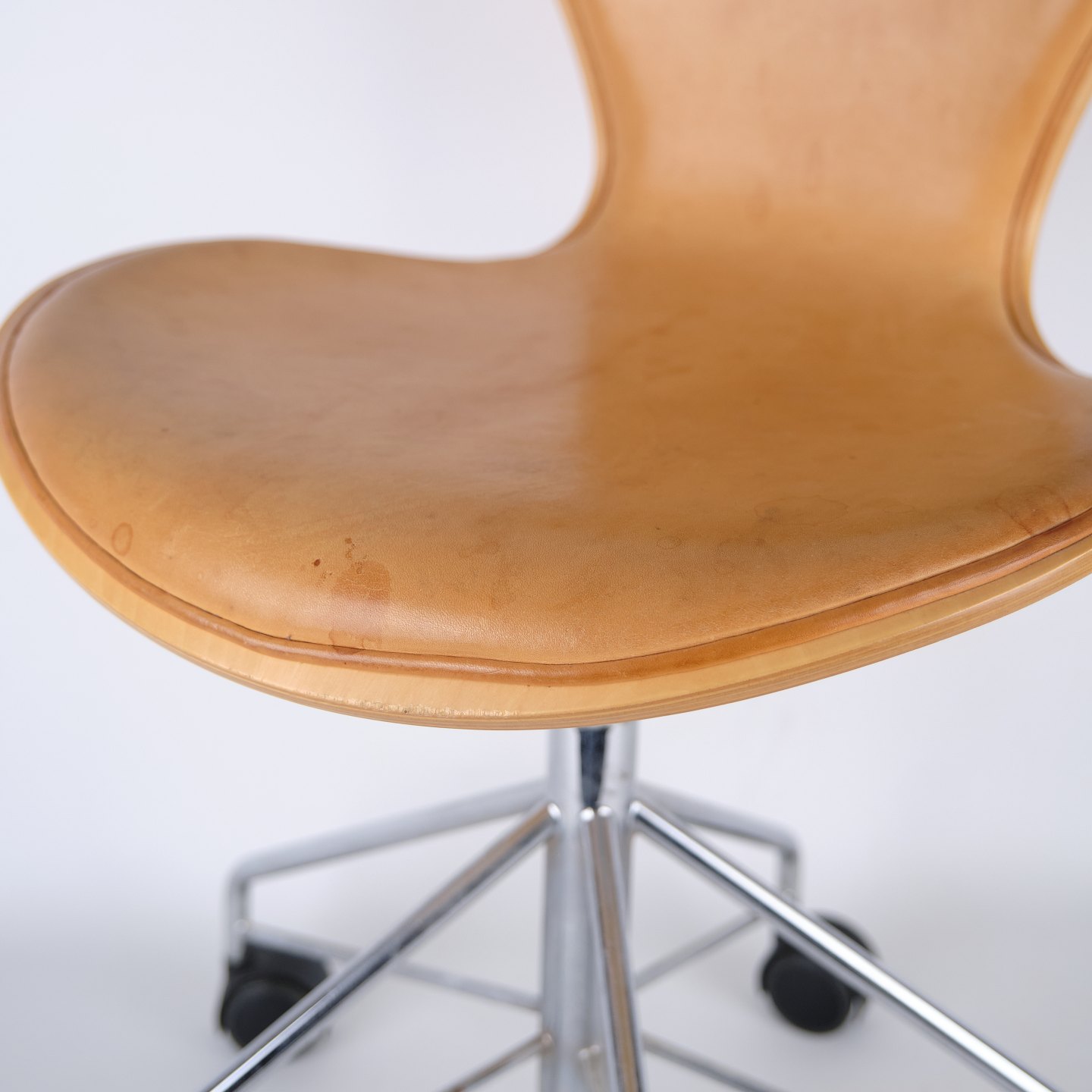 Seven Office Chair - Model 3117 - Patinated Natural Leather - Swivel Function - Arne Jacobsen - Fritz Hansen