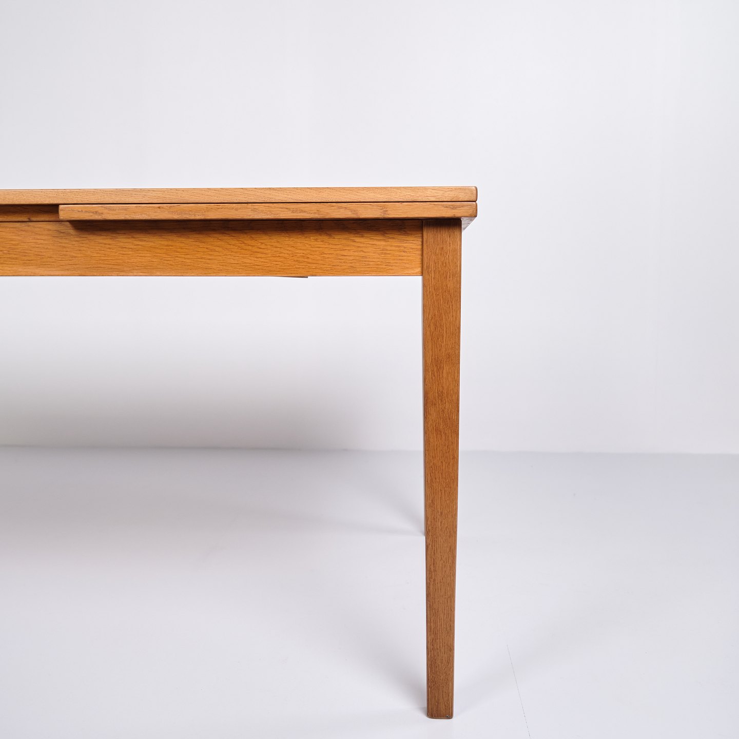 Kai Winding oak dining table from the 1960s. Slagelse Møbelfabrik. Pull-out with two leaves, 55 cm each.