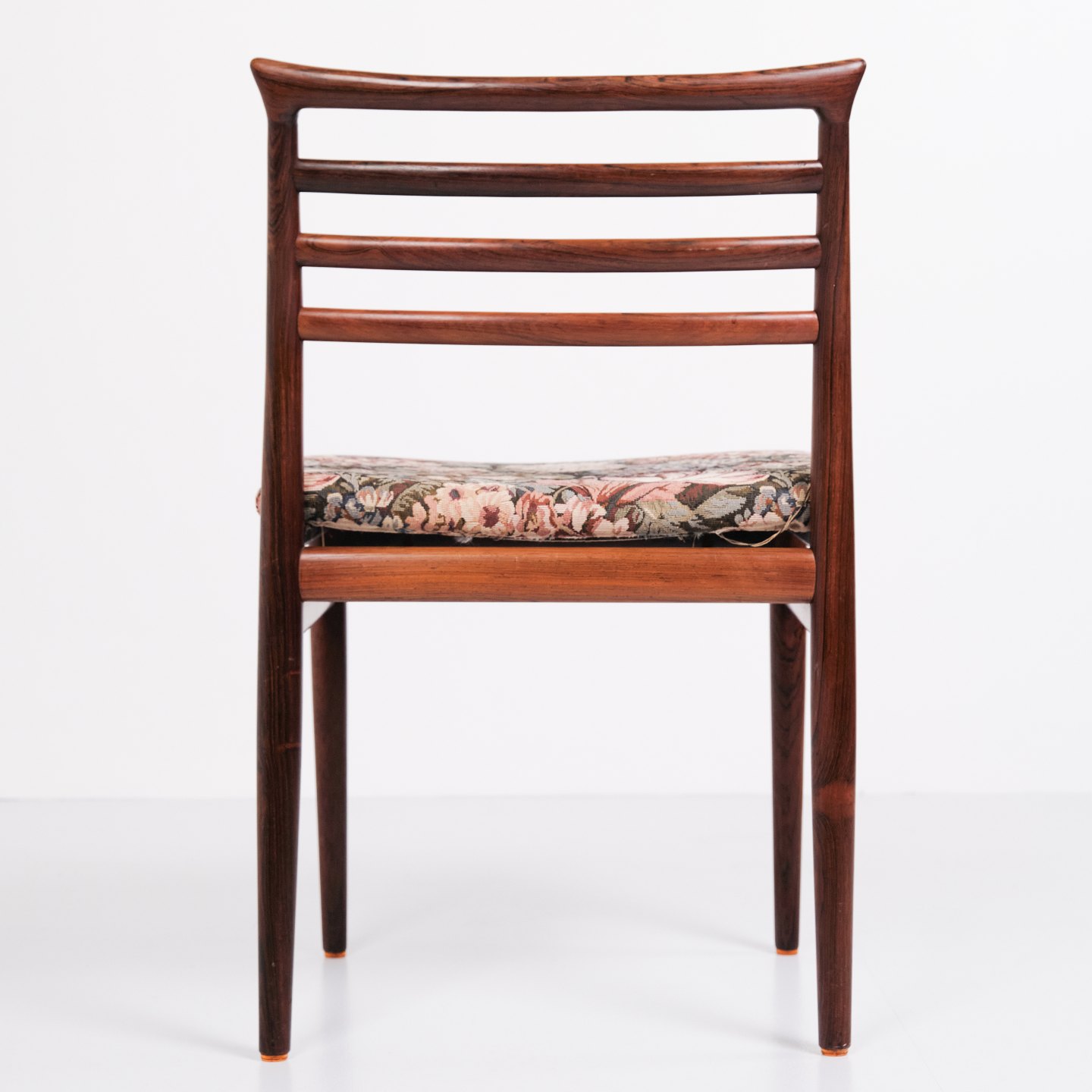 Set of six Erling Torvits dining chairs from the 1960s. Rosewood with floral seat. Sorø Møbelfabrik.
