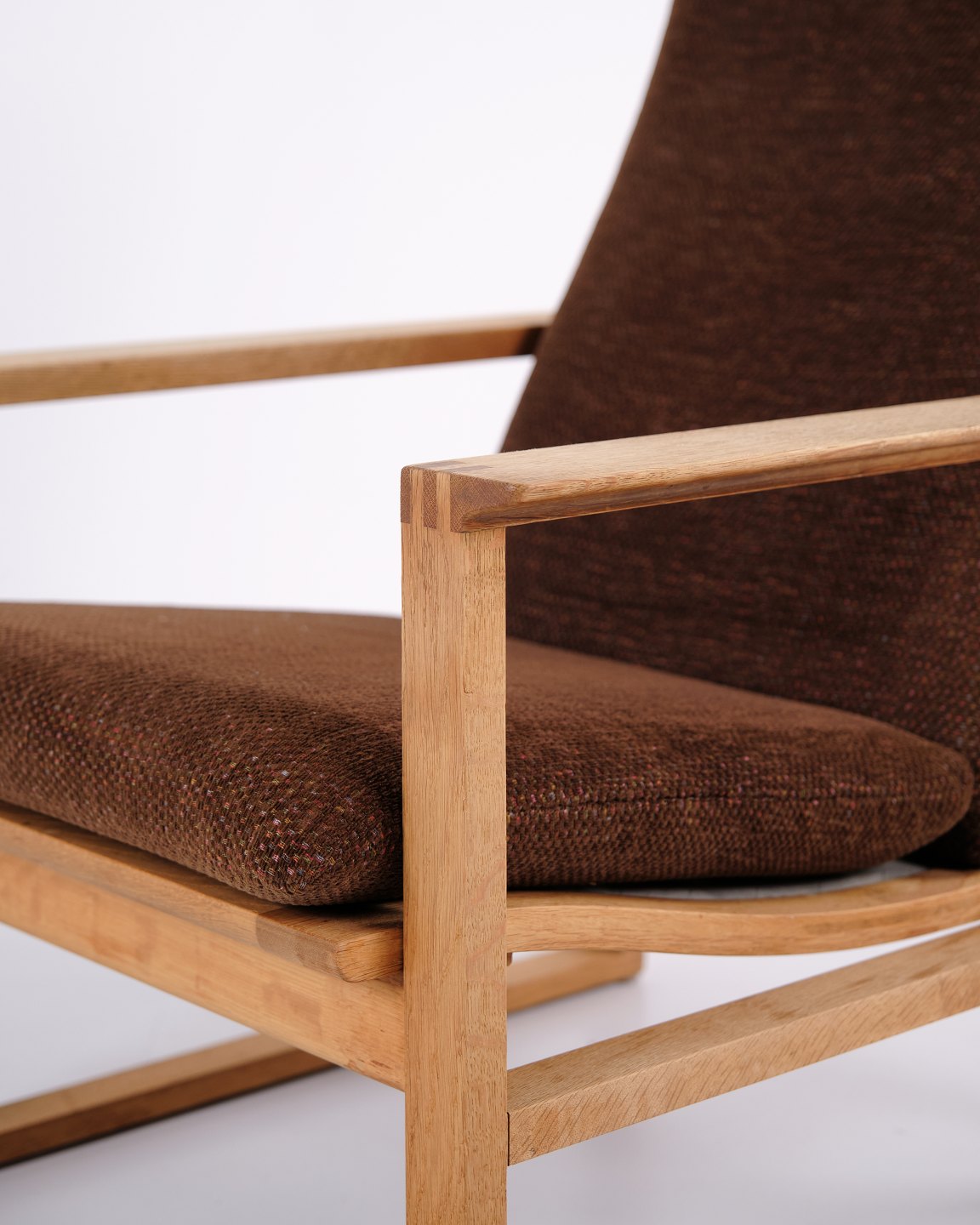 Børge Mogensen sled chair BM2254 from Fredericia Stolefabrik. Oak with brown cushions.