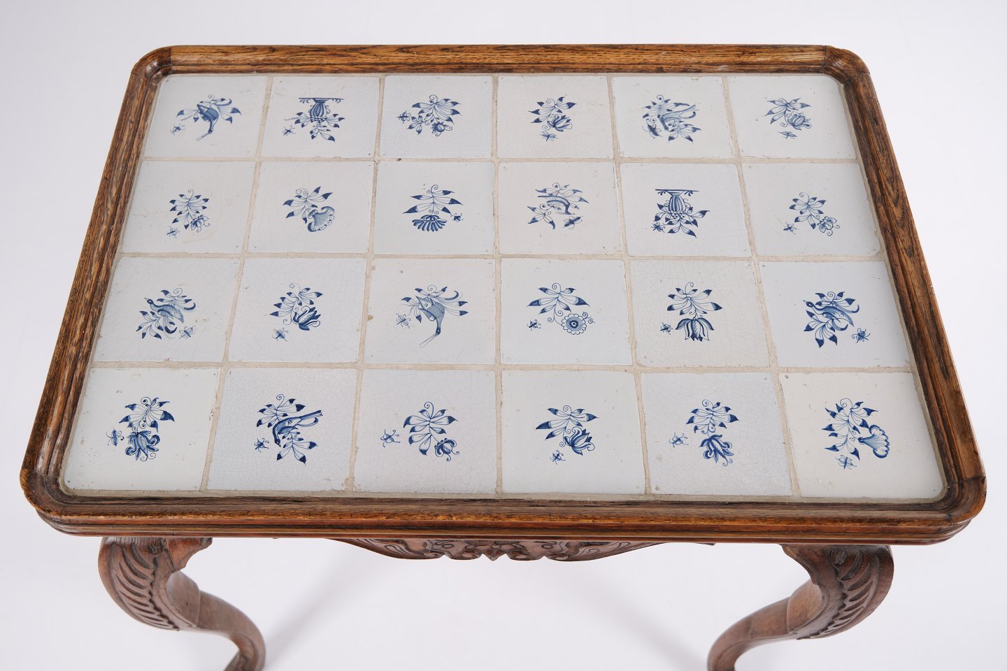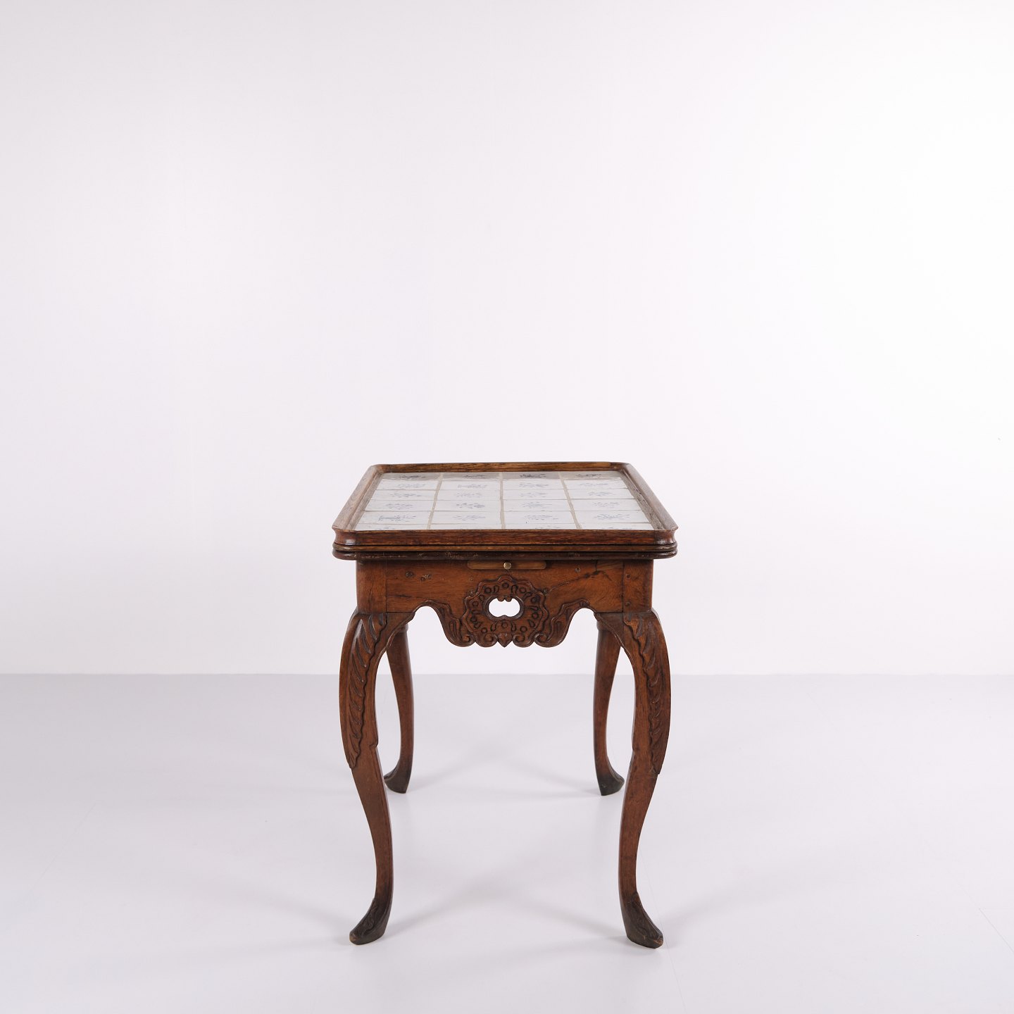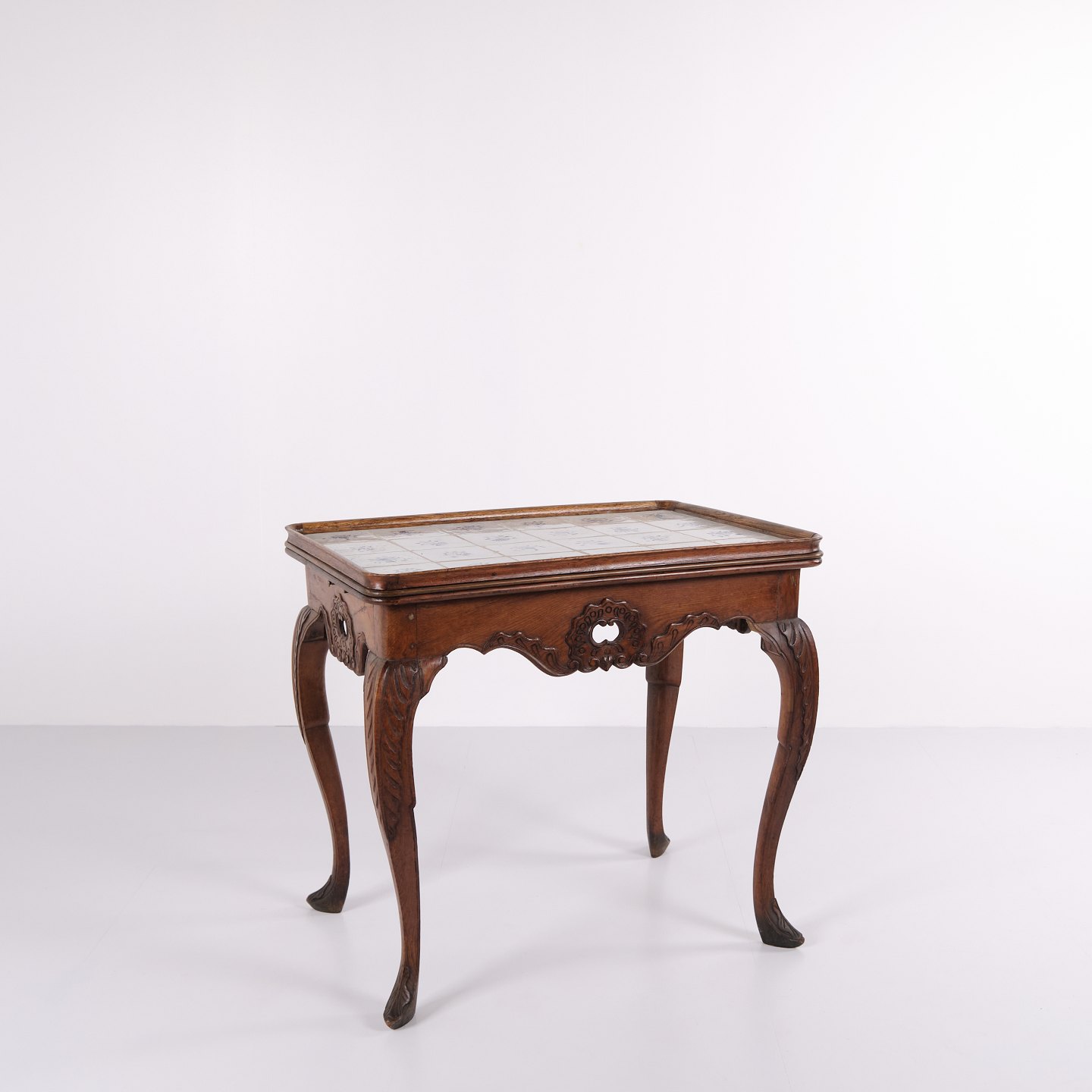 Antique Tile Table - Patinated Oak - Rococo Style - Dutch Tiles - 1780