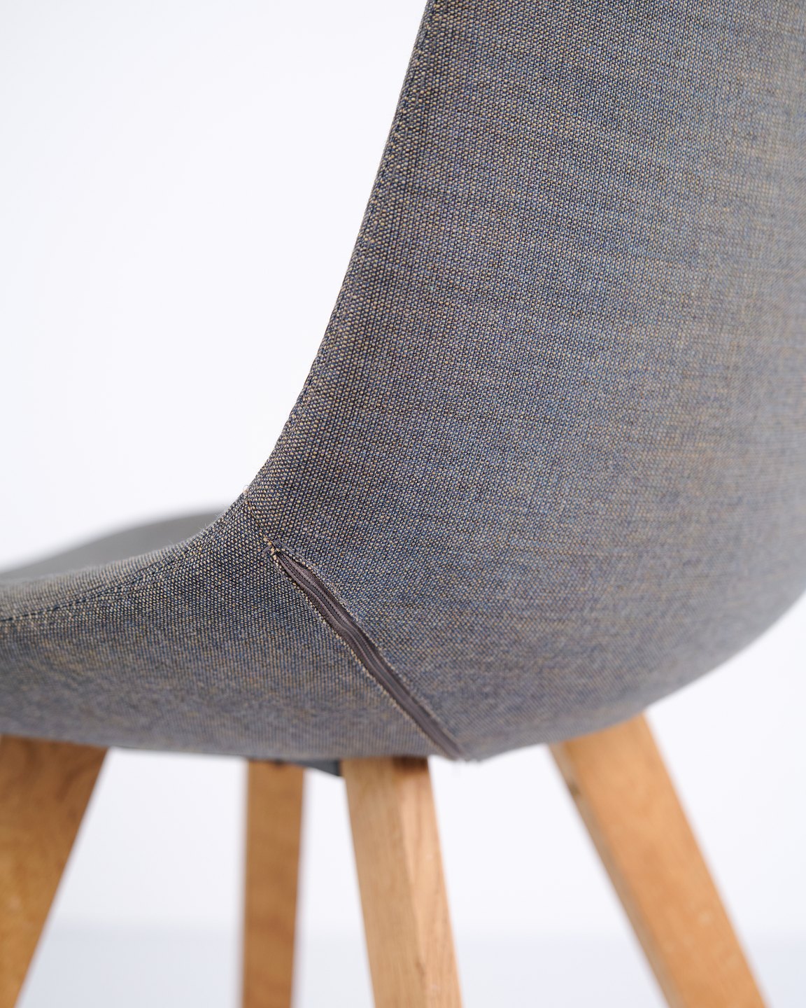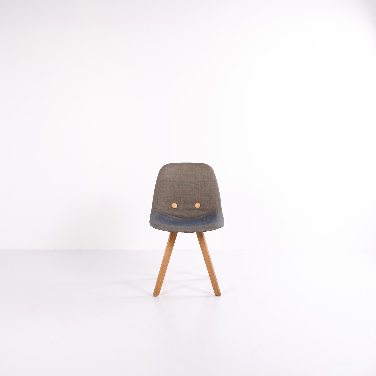 Eyes Wood chair by Erik Jørgensen with mid-grey upholstery and solid wood legs. A modern dining chair offering good seating comfort and high-quality materials.