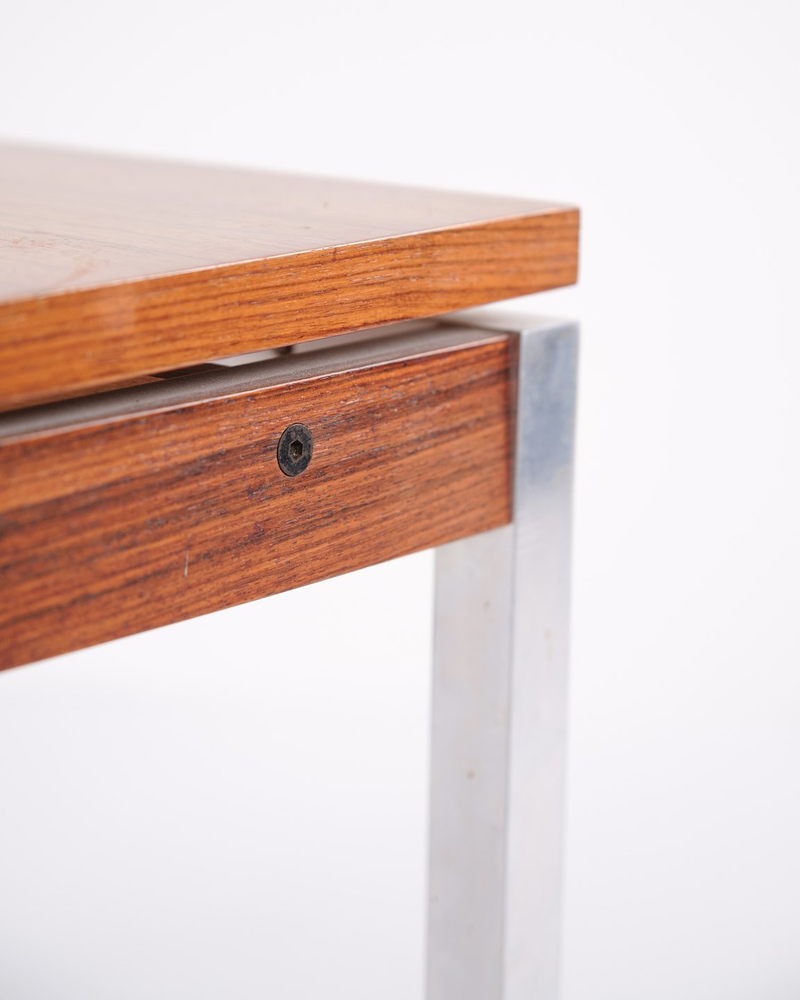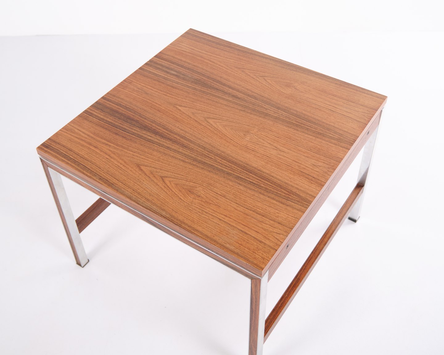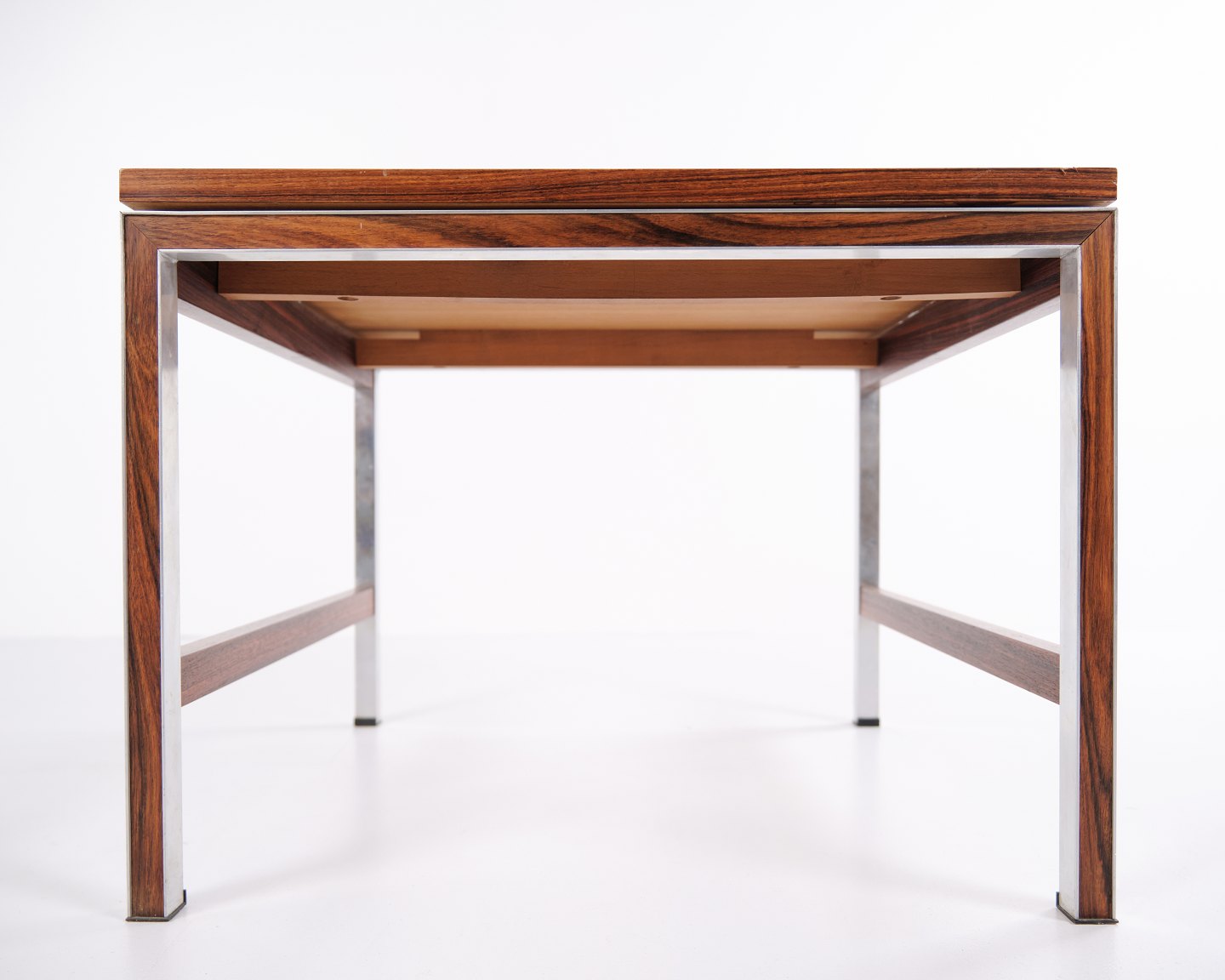 Side or lamp table from the 1960s, made of rosewood with aluminium details. Classic Danish design suitable as a coffee table, lamp table or bedside table.
