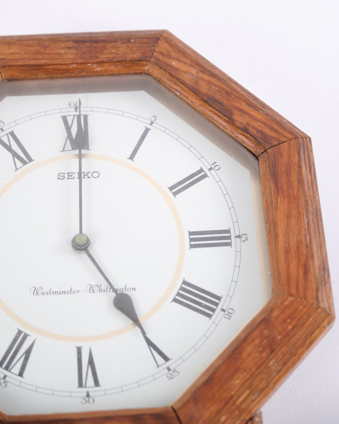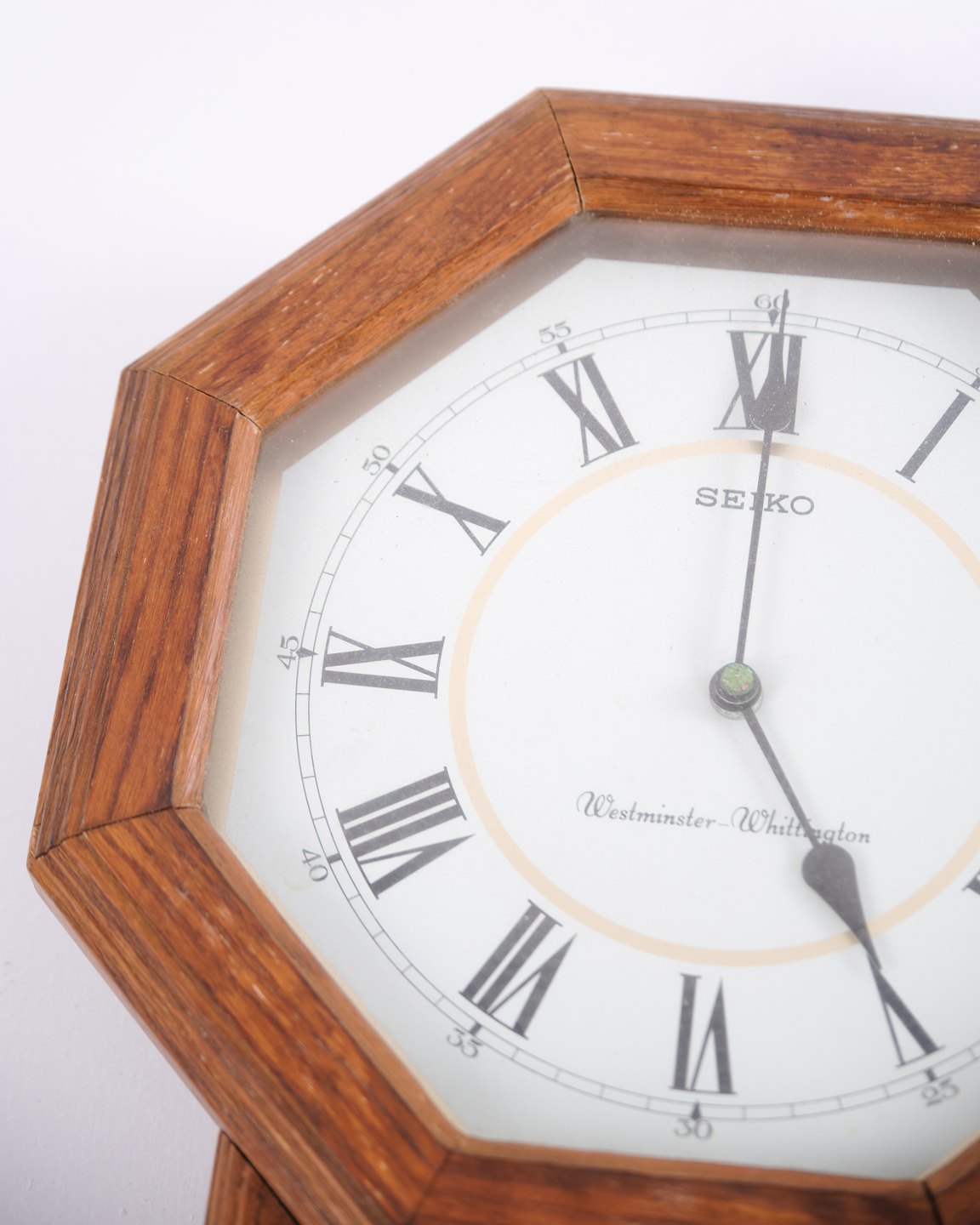 Vægur fra Seiko med Westminster og Whittington-kimemelodier. Udført i egetræ med klassisk front og klar urskive. Et kvalitetsur med præcis gang og et tidløst udtryk.