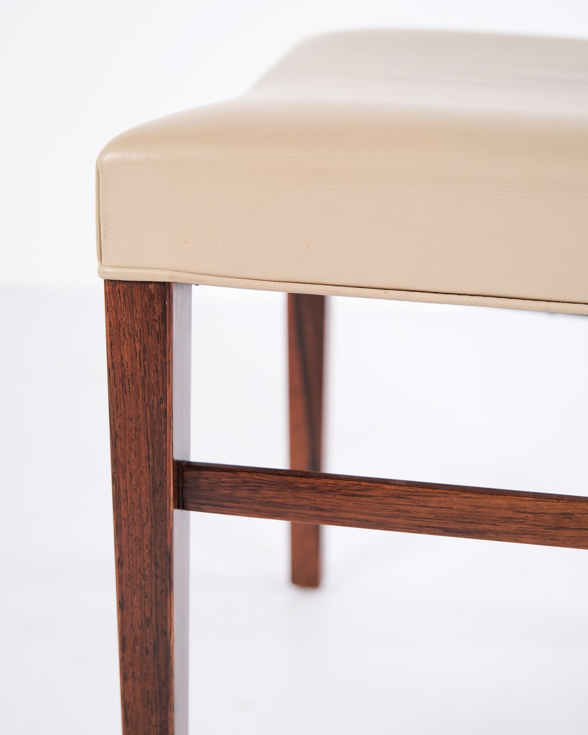 Satz von vier Esszimmerstühlen von Ole Wanscher für A.J. Iversen. Palisander und cremefarbenes Leder. Dänisches Design aus den 1960er-Jahren.