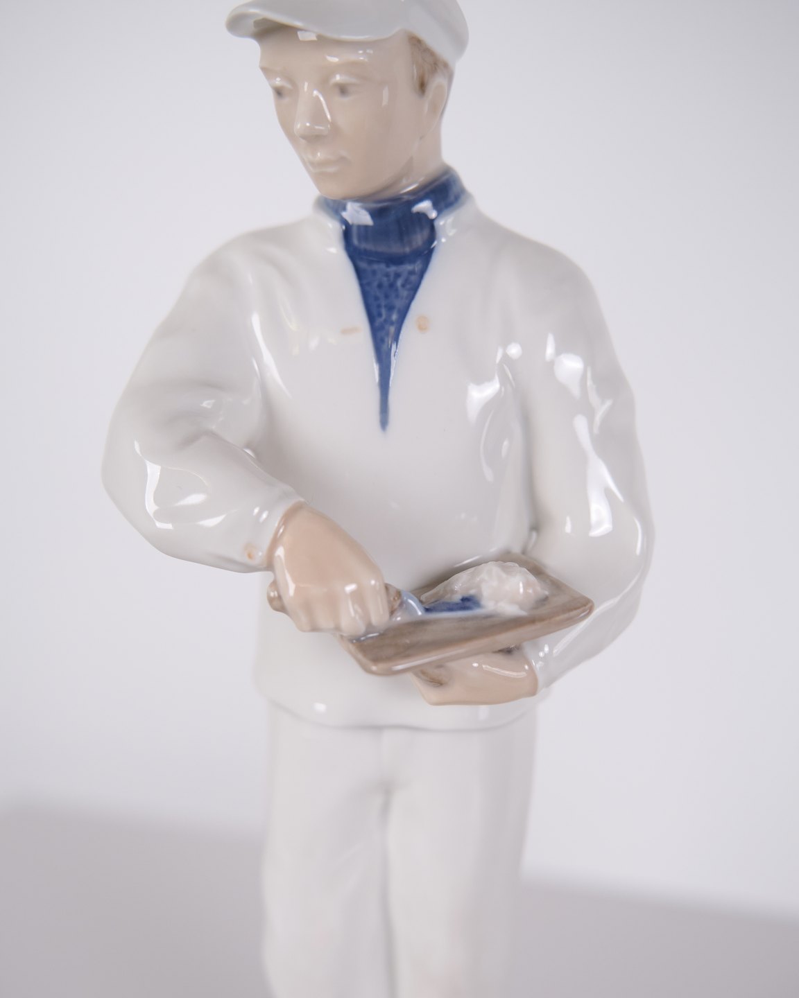 Königliche Maurerfigur, Modell 4377, entworfen von Johannes Hedegaard für Royal Copenhagen. Die Figur stellt einen Maurer in Arbeitskleidung dar und gehört zur Figurenproduktion von Royal Copenhagen aus dem 20. Jahrhundert.