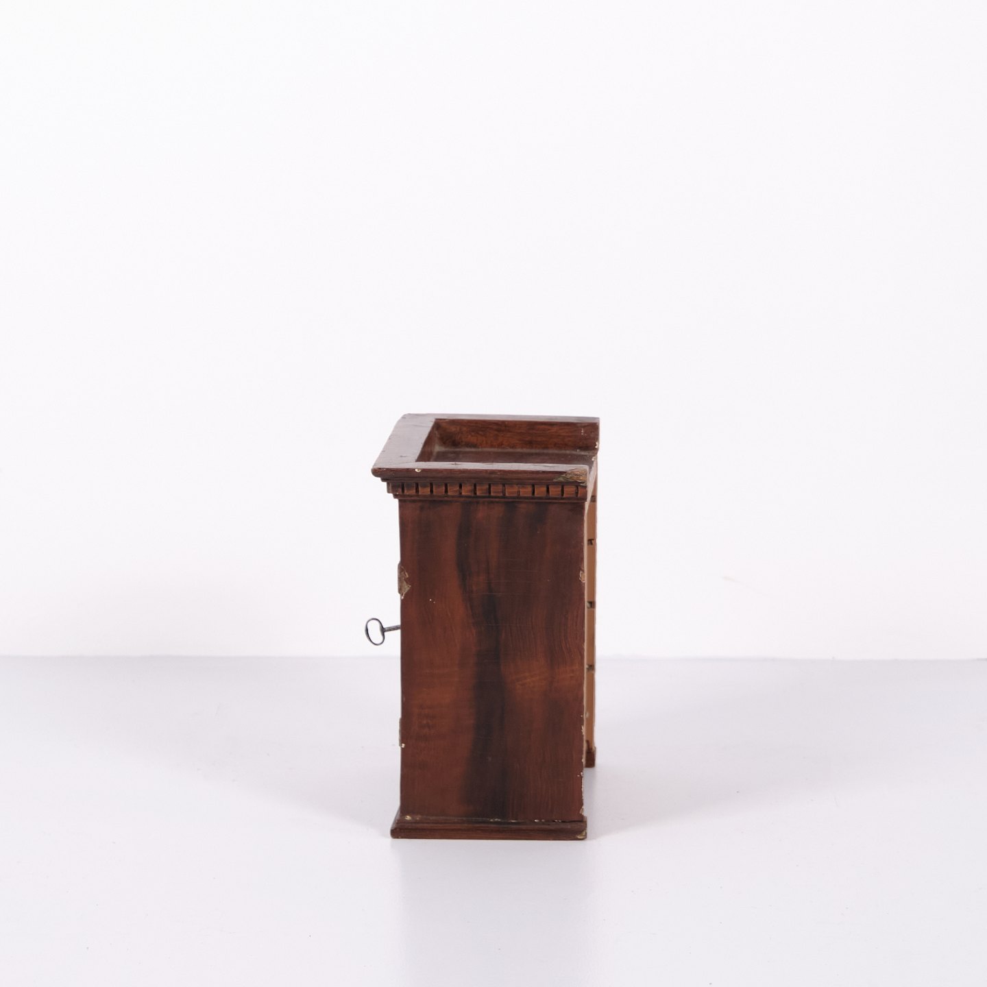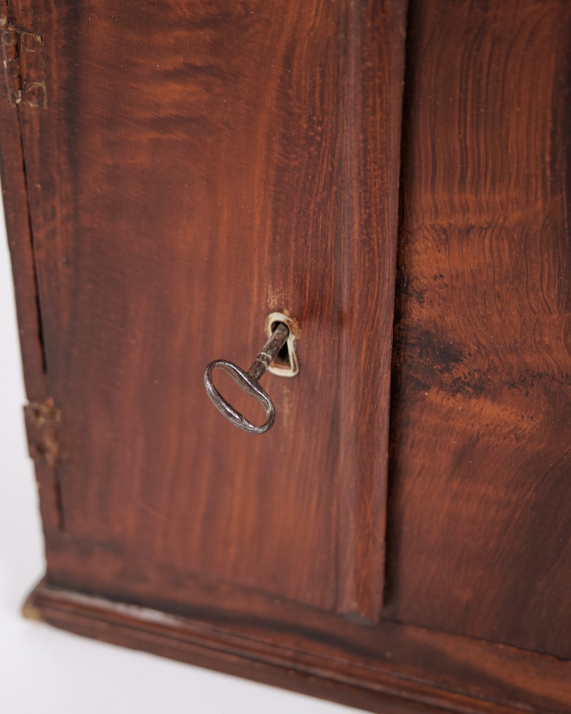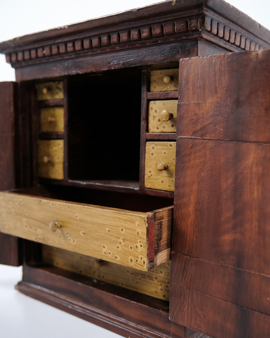 Antikes Miniaturmöbel aus Eiche mit handgeschmiedeten Beschlägen aus den 1840er Jahren. Ein einzigartiges und dekoratives Sammlerstück mit historischem Charakter.