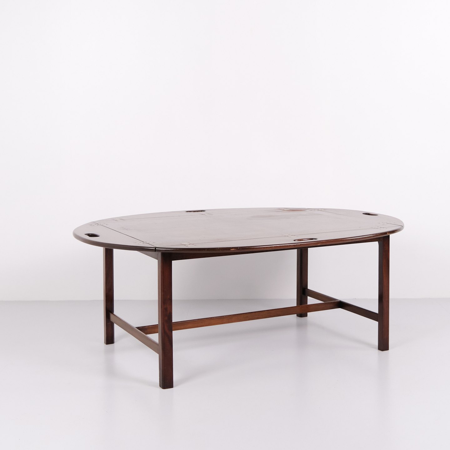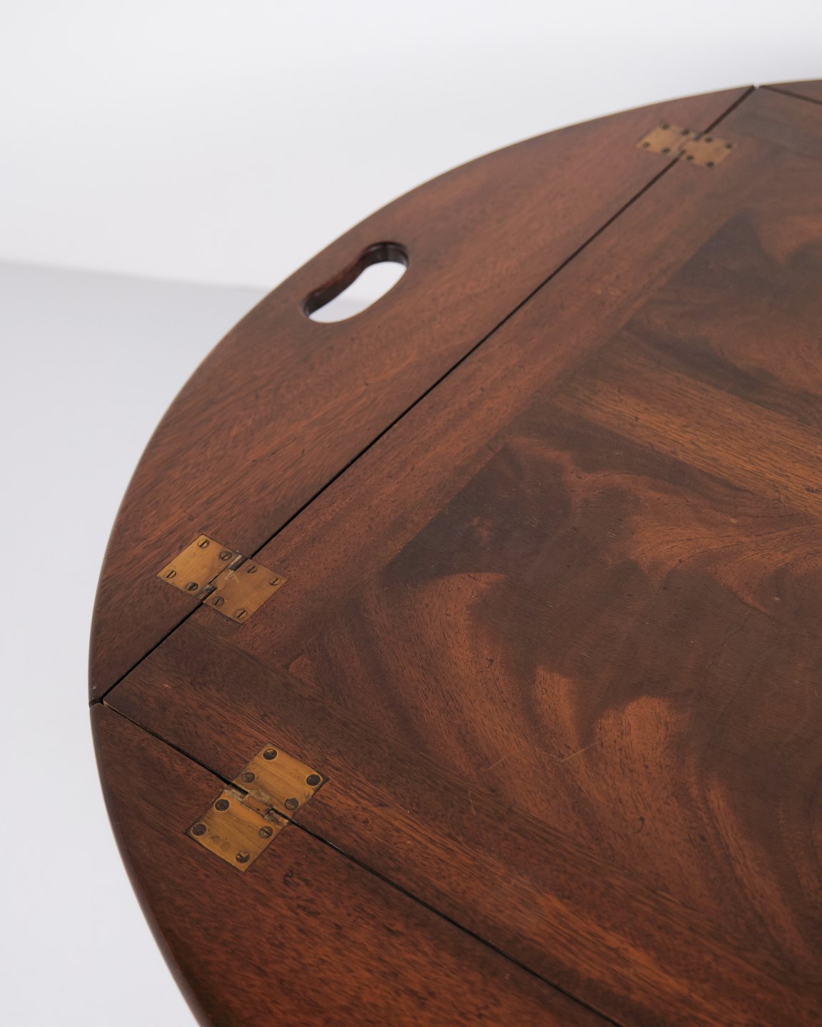 Butlertisch aus Mahagoni mit Messingbeschlägen aus den 1930er Jahren. Englisches Design mit klassischem Ausdruck und funktionaler Formensprache.