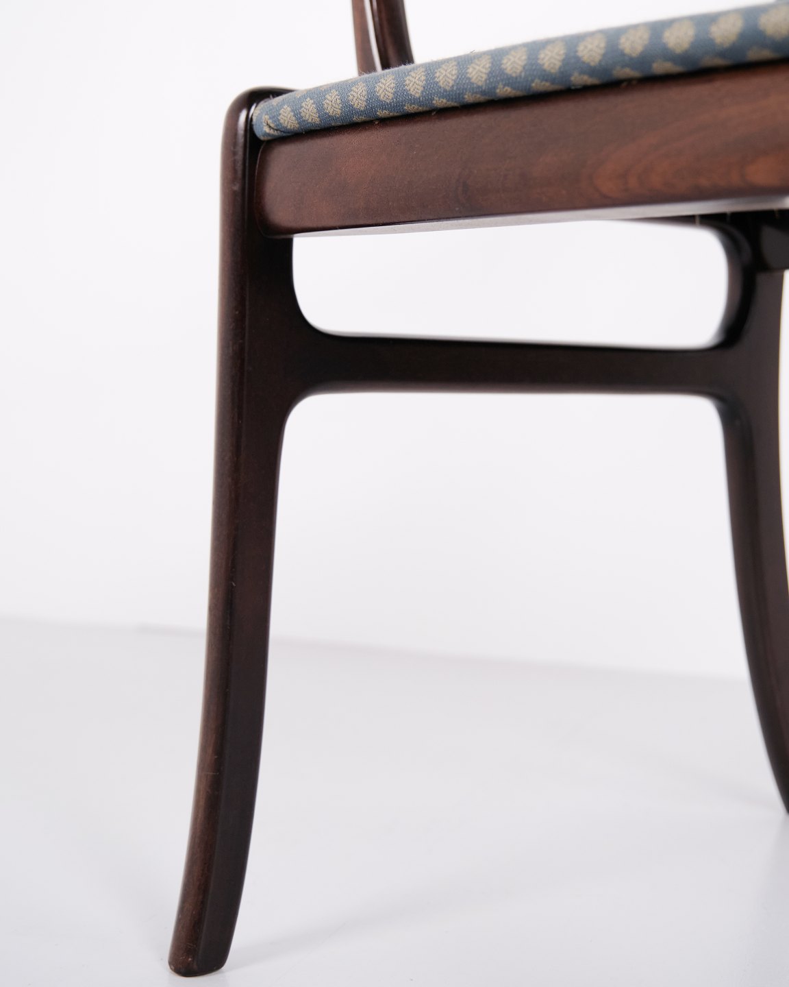 Die Serie Rungstedlund gehört zu den bekannten Entwürfen von Ole Wanscher und zeigt seine Inspiration durch historische Möbeltypen, die er in einer leichteren und moderneren skandinavischen Formensprache interpretierte. Das Ergebnis ist ein eleganter Stuhl, der Komfort mit hoher handwerklicher Qualität verbindet.