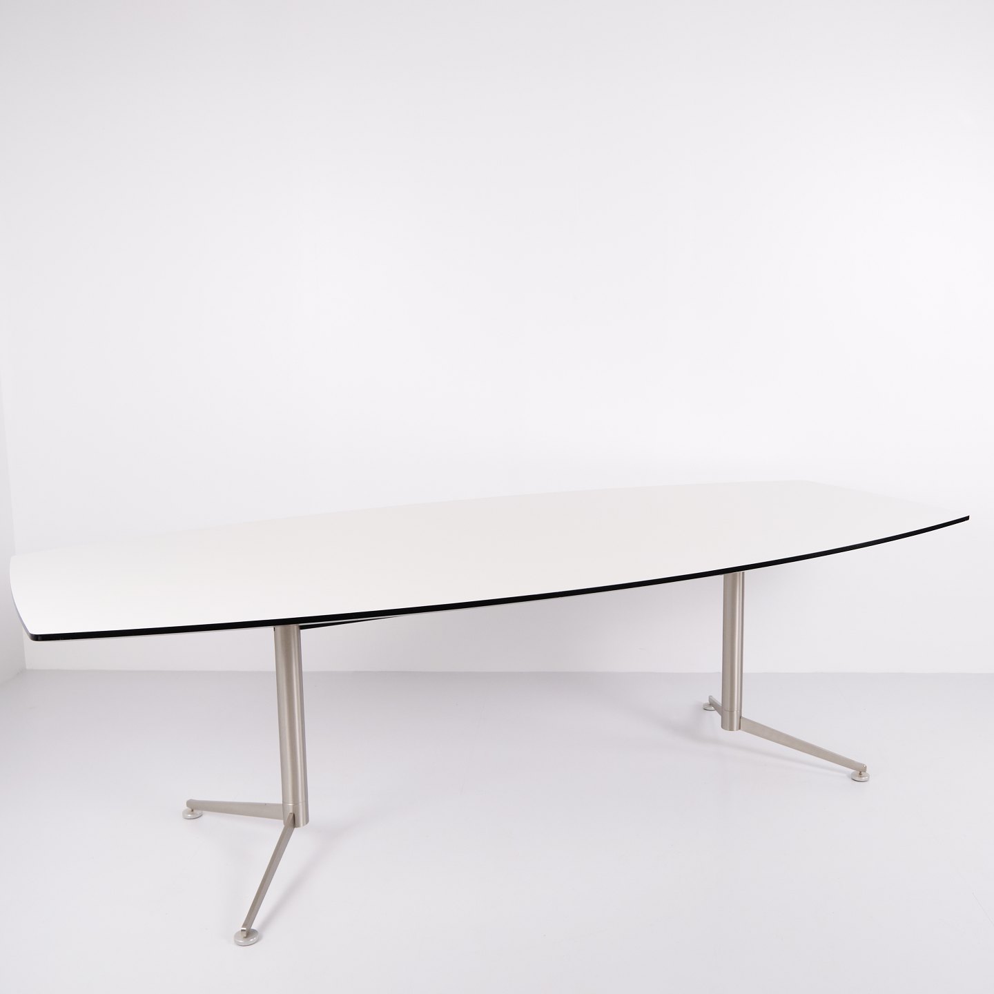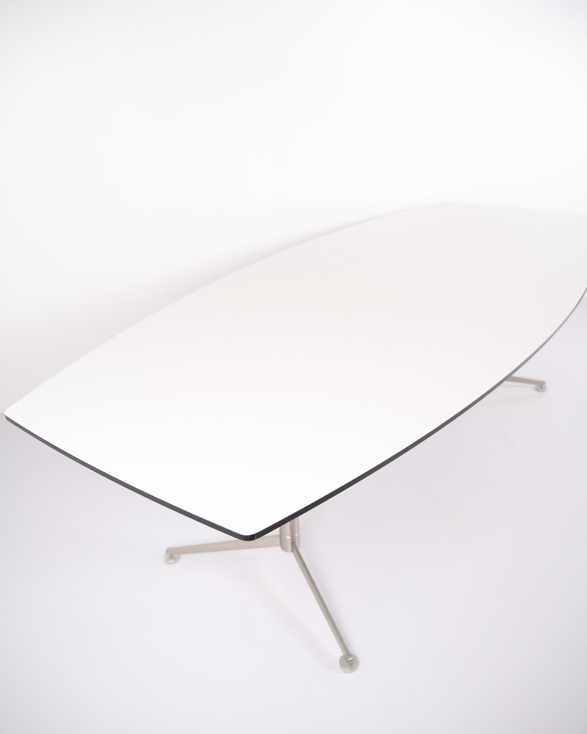Paustian Konferenztisch Modell SP64 Spinal in weißem Laminat mit Gestell aus gebürstetem Stahl. Dänisches Design mit funktionalem und modernem Ausdruck.