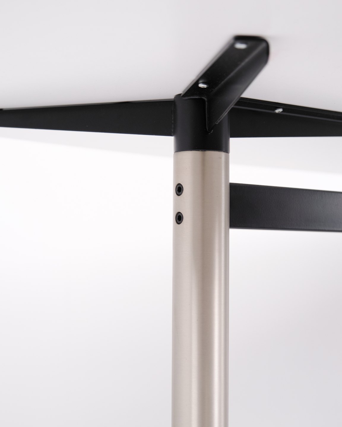 — Material: Weißes Laminat und Gestell aus gebürstetem Stahl
