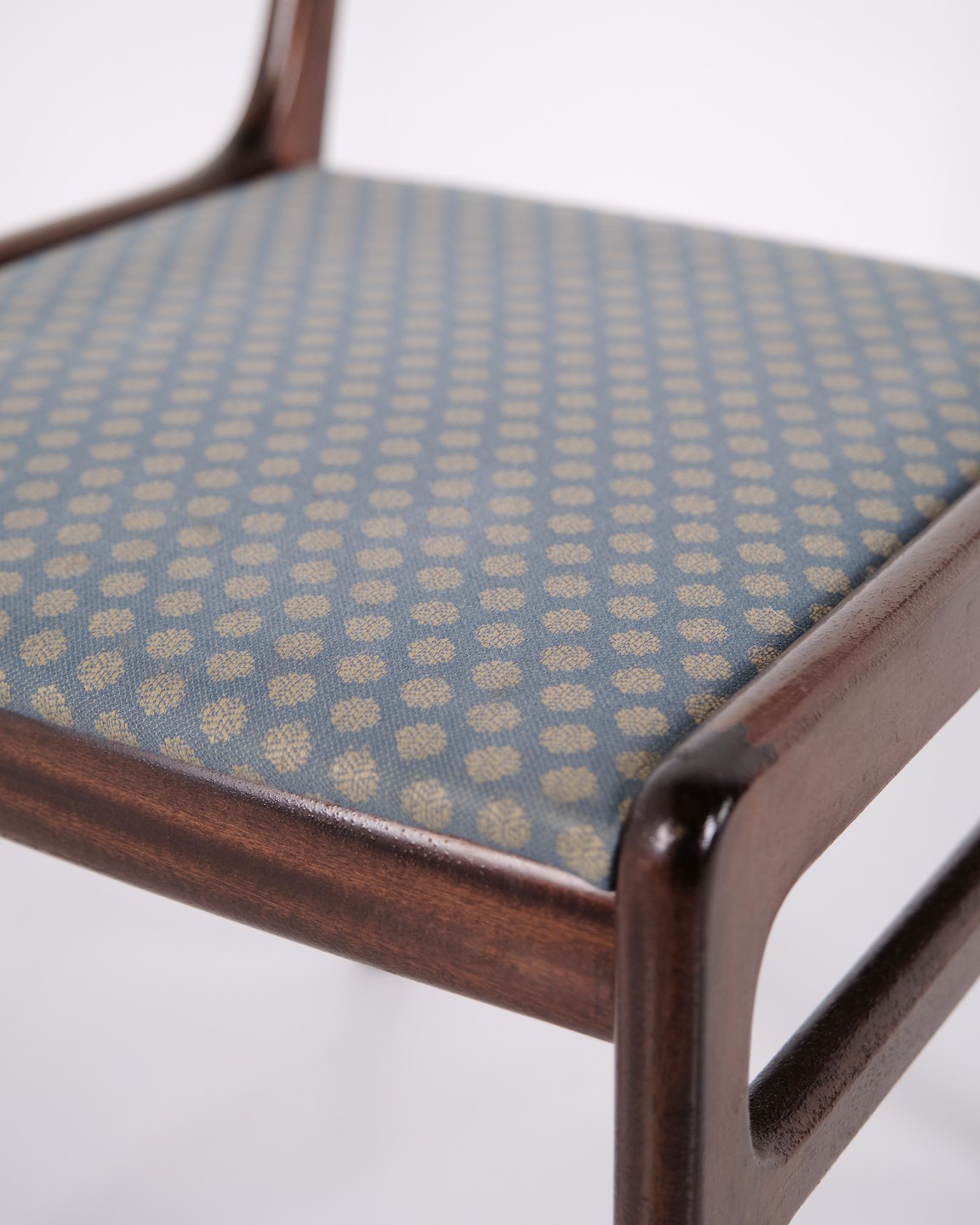 Satz Esszimmerstühle aus der Serie Rungstedlund, entworfen von Ole Wanscher in den 1950er Jahren und hergestellt bei Poul Jeppesen Møbelfabrik in Dänemark. Die Stühle zeichnen sich durch ihre eleganten Proportionen, die schlanke Konstruktion und ihr klassisches Erscheinungsbild aus, das typisch für Ole Wanschers Ansatz im dänischen Möbeldesign ist.