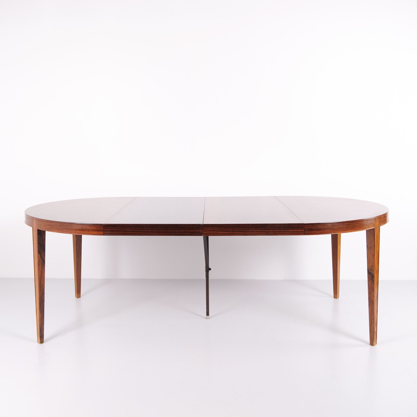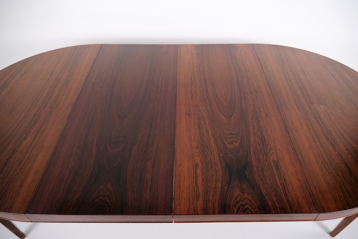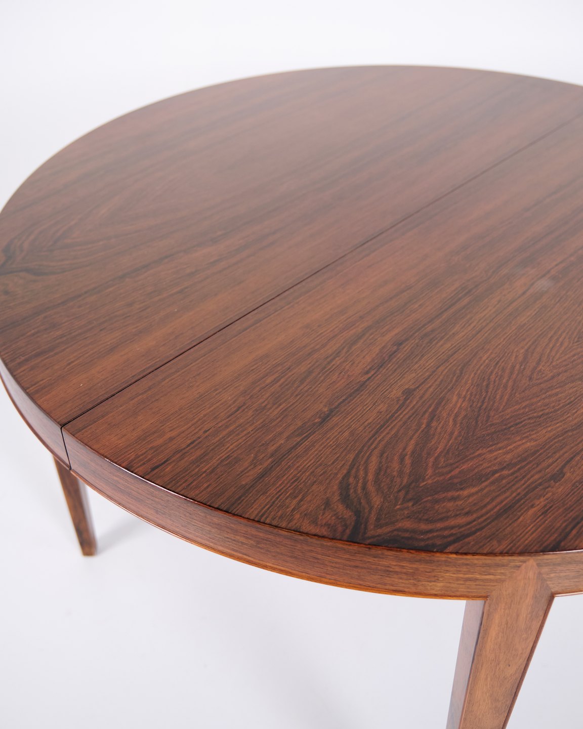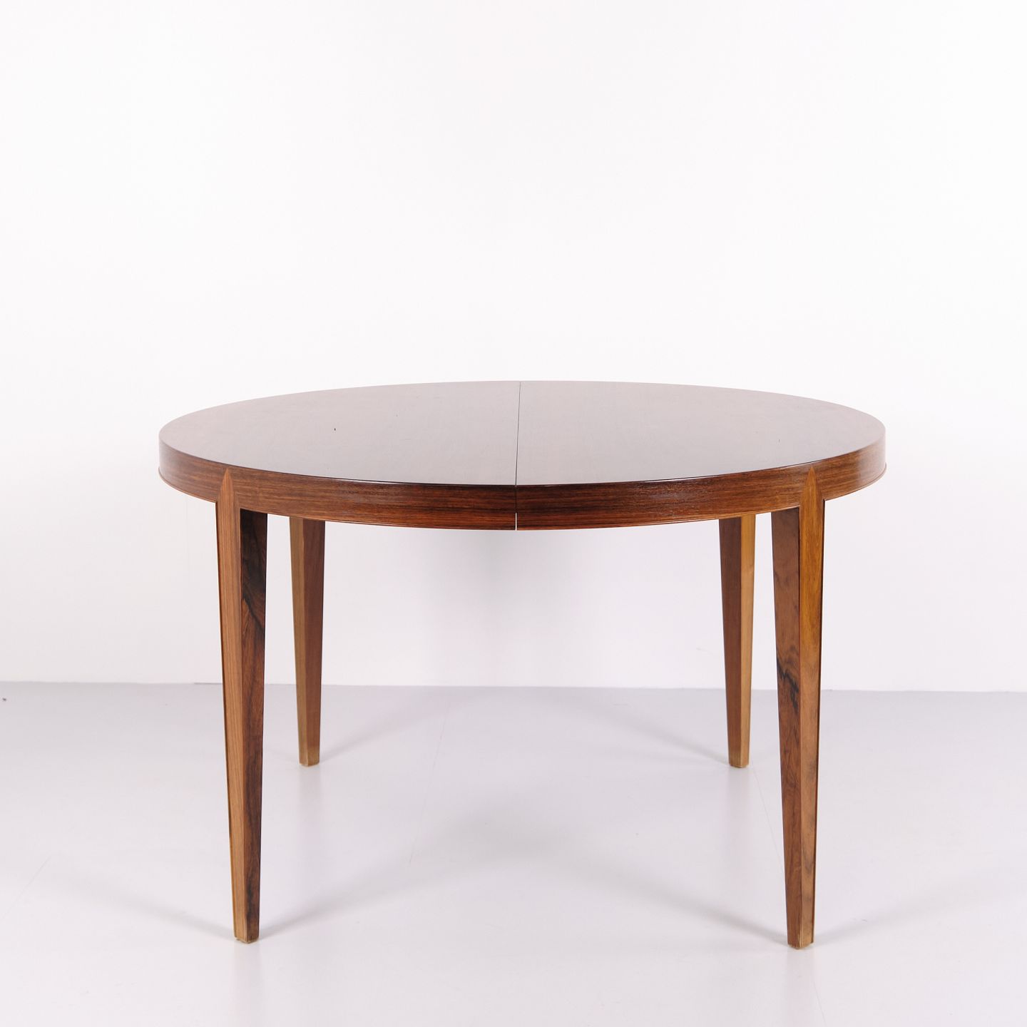 Severin Hansen runder Esstisch Modell 57 aus Palisander von Haslev Møbelfabrik. Dänisches Design aus den 1960er Jahren mit Auszug und klassischer Formensprache.