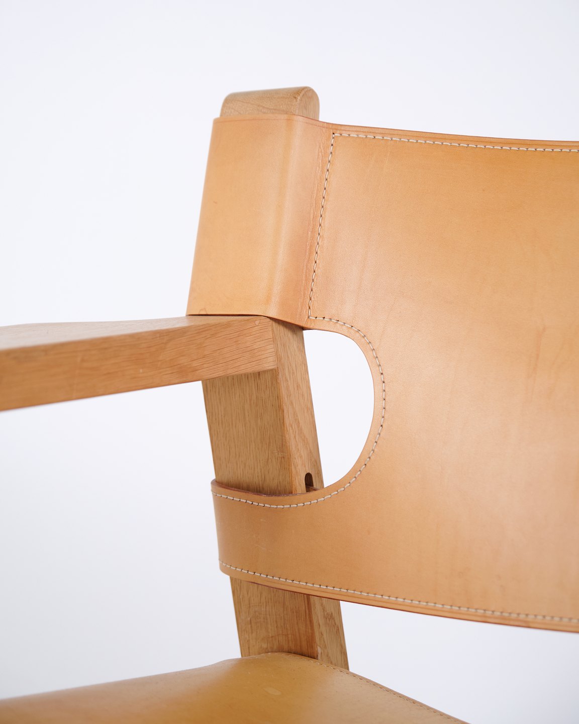 Børge Mogensen Der Spanische Stuhl Modell BM2226 aus natürlich patiniertem Kernleder aus den 1960er Jahren. Klassische dänische Designikone mit robustem Ausdruck.