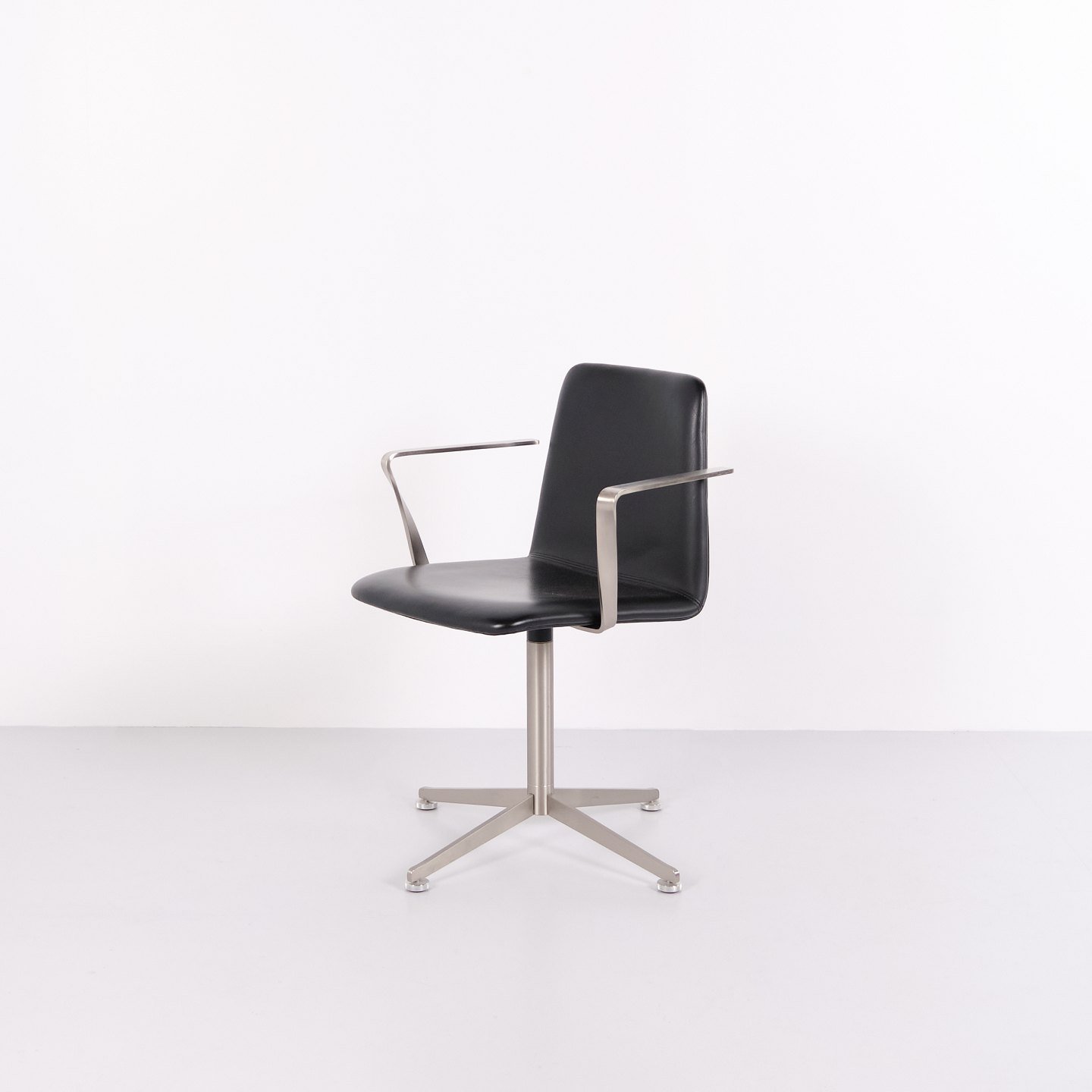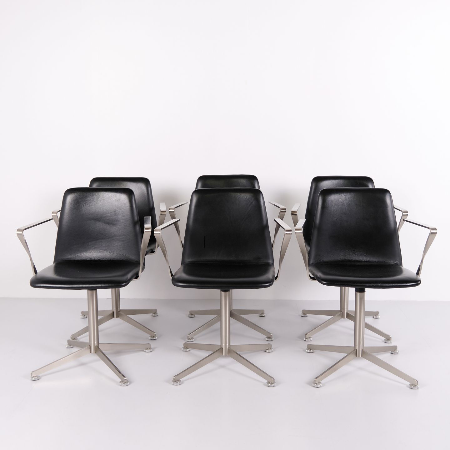 Satz von 6 Paustian Spinal 44 Konferenzstühlen aus schwarzem Leder. Dänisches Design mit modernem und funktionalem Formensprache.