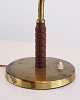 LYFA Tischlampe aus den 1930/40er Jahren aus patiniertem Messing mit Schwenkarm und originalem bernsteinfarbenem Schirm aus Schweinsleder. Klassische dänische Beleuchtung.
