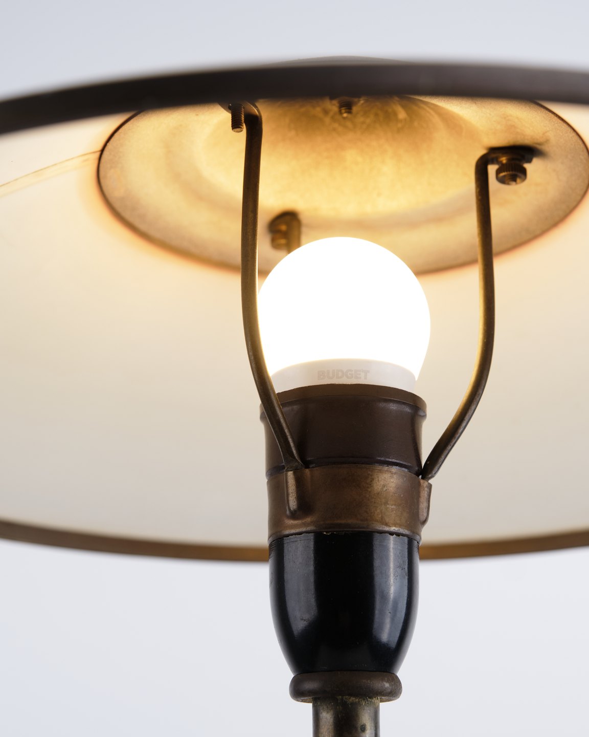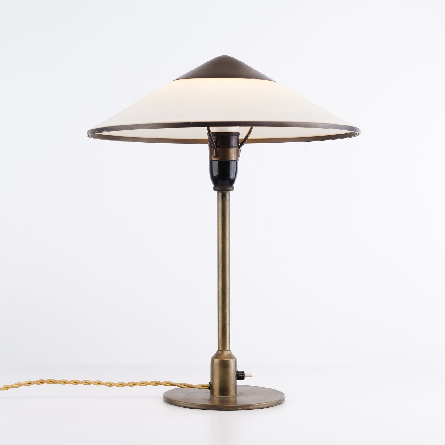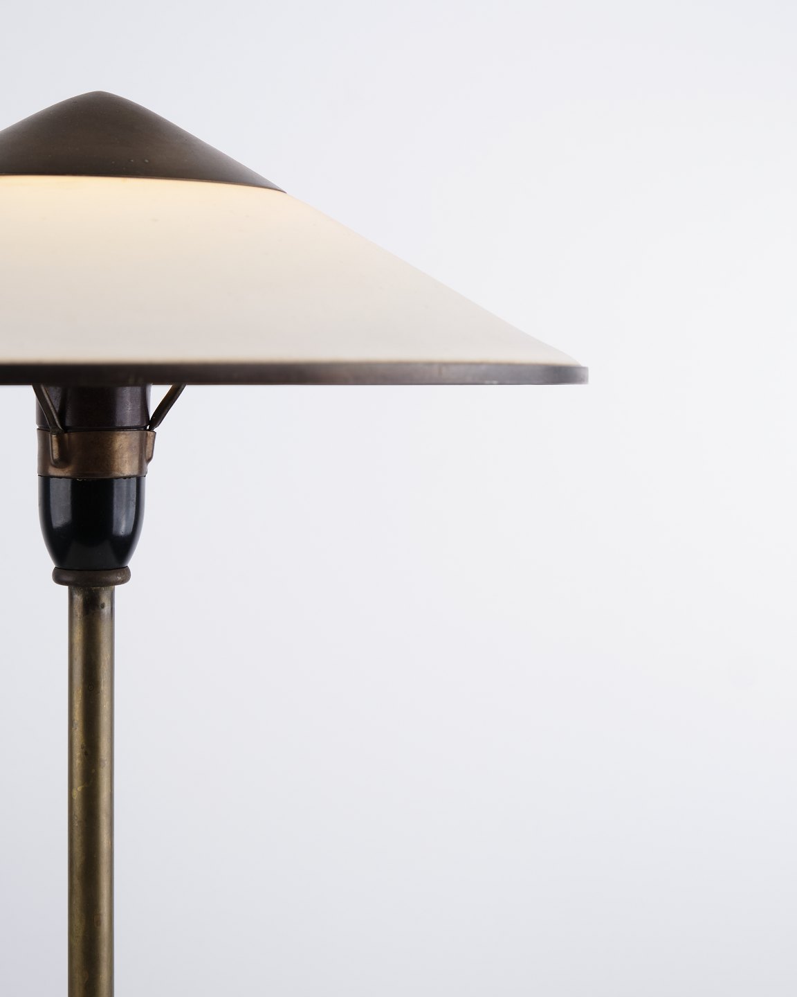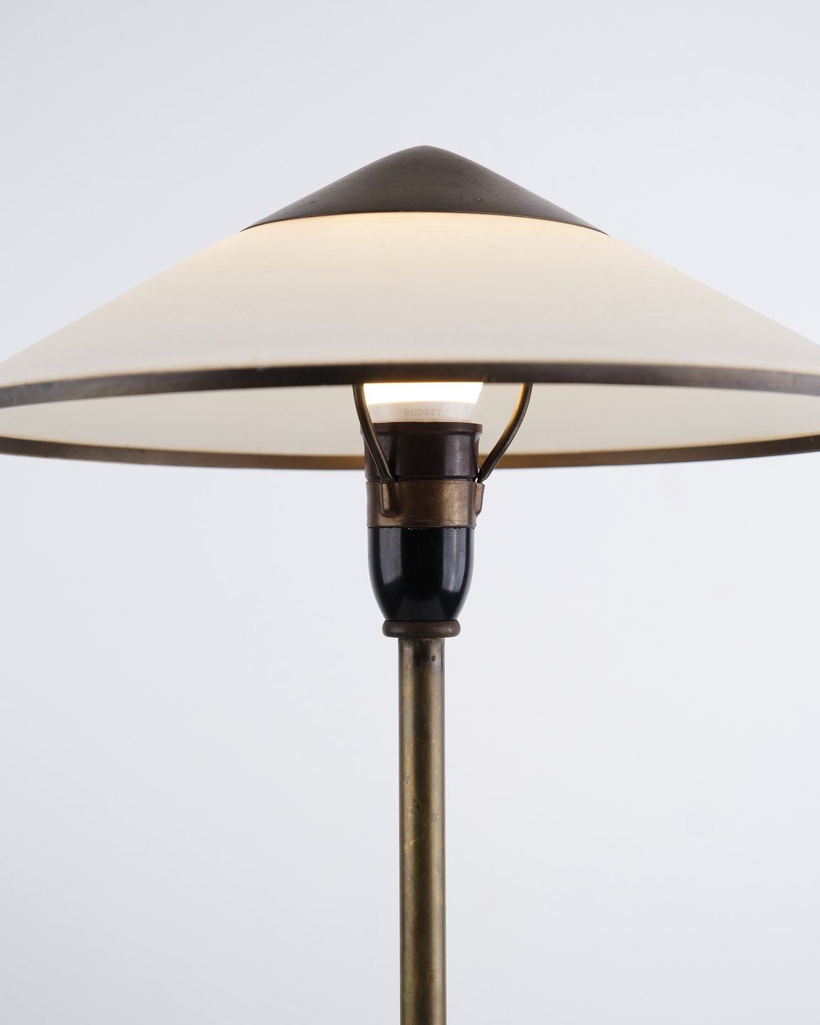 Niels Thykier Kongelys Tischlampe aus Messing mit cremeweißem Schirm. Klassisches dänisches Design mit elegantem und funktionalem Licht.