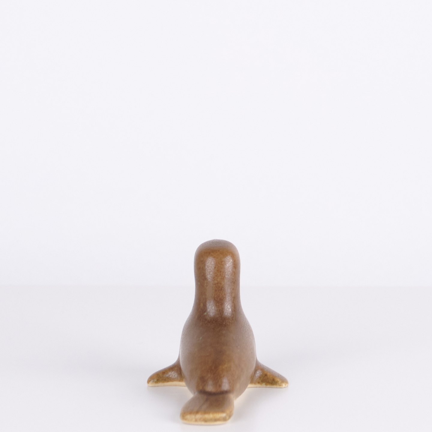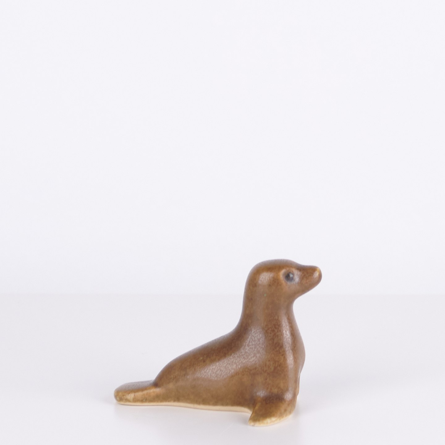 Robbenfigur von Knud Basse aus glasierter Keramik. Die Figur wurde in den 1960er Jahren in Dänemark hergestellt. Knud Basse ist bekannt für keramische Tierfiguren mit Naturmotiven aus dieser Zeit.