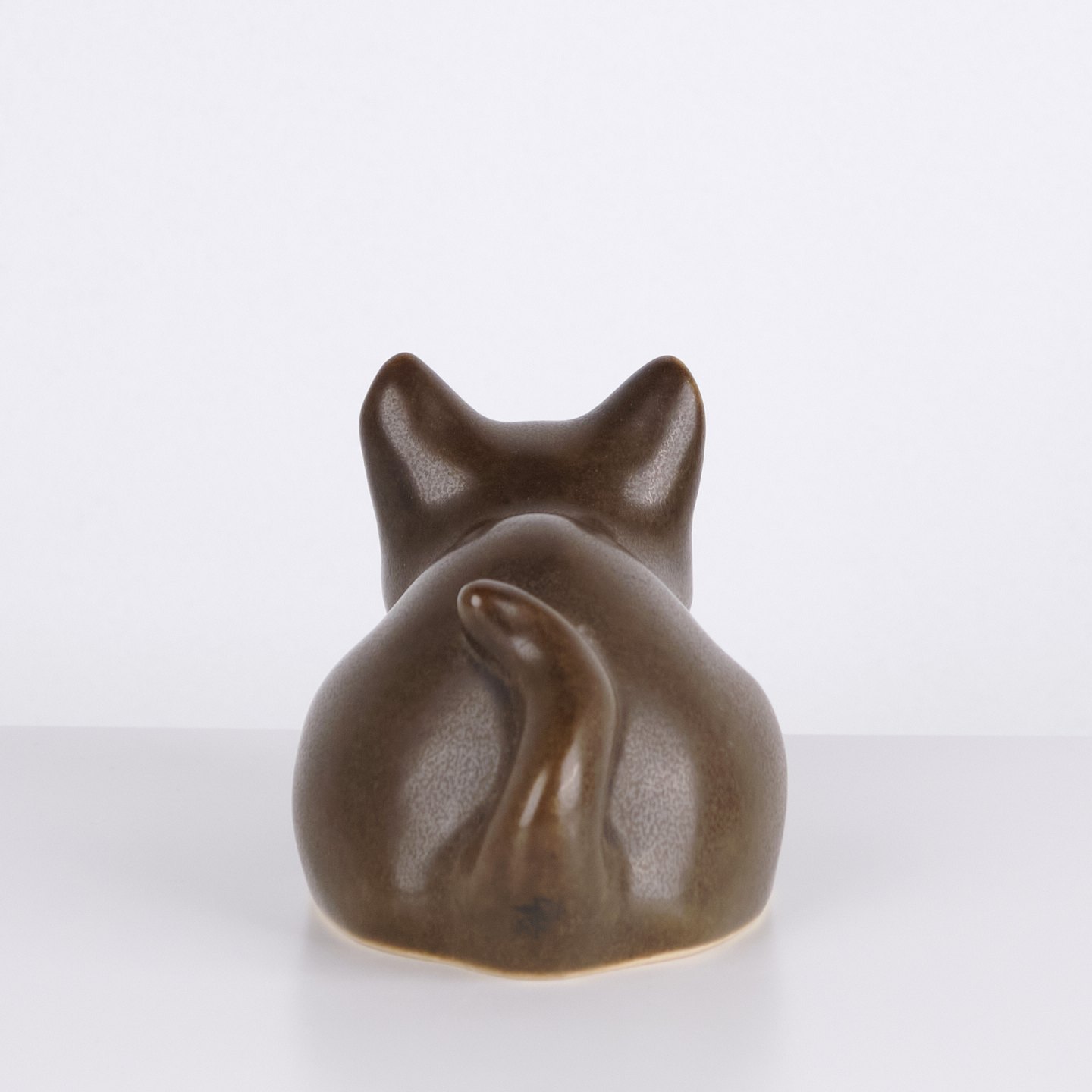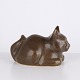 Katzenfigur von Knud Basse als Vase aus braun glasierter Keramik gefertigt.
