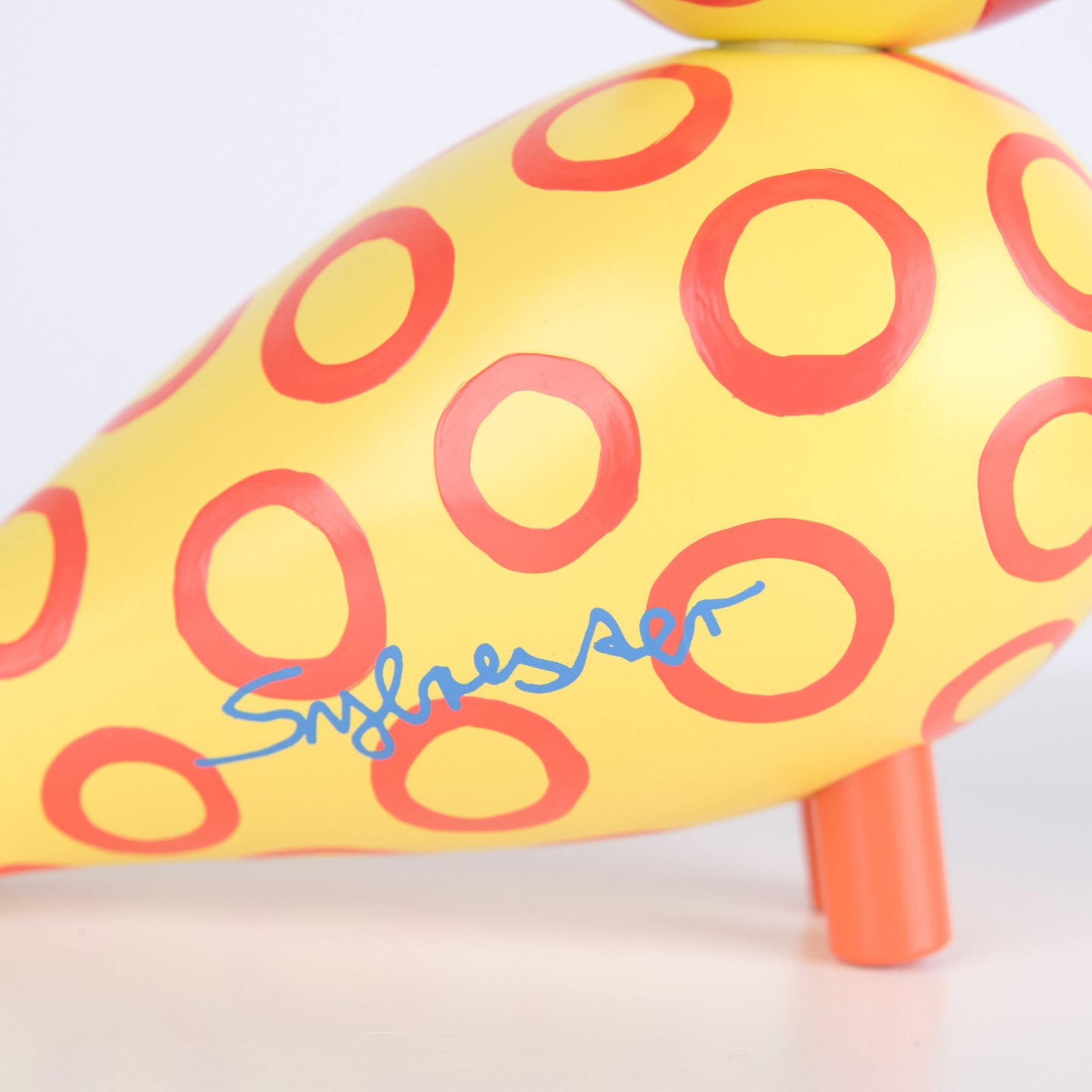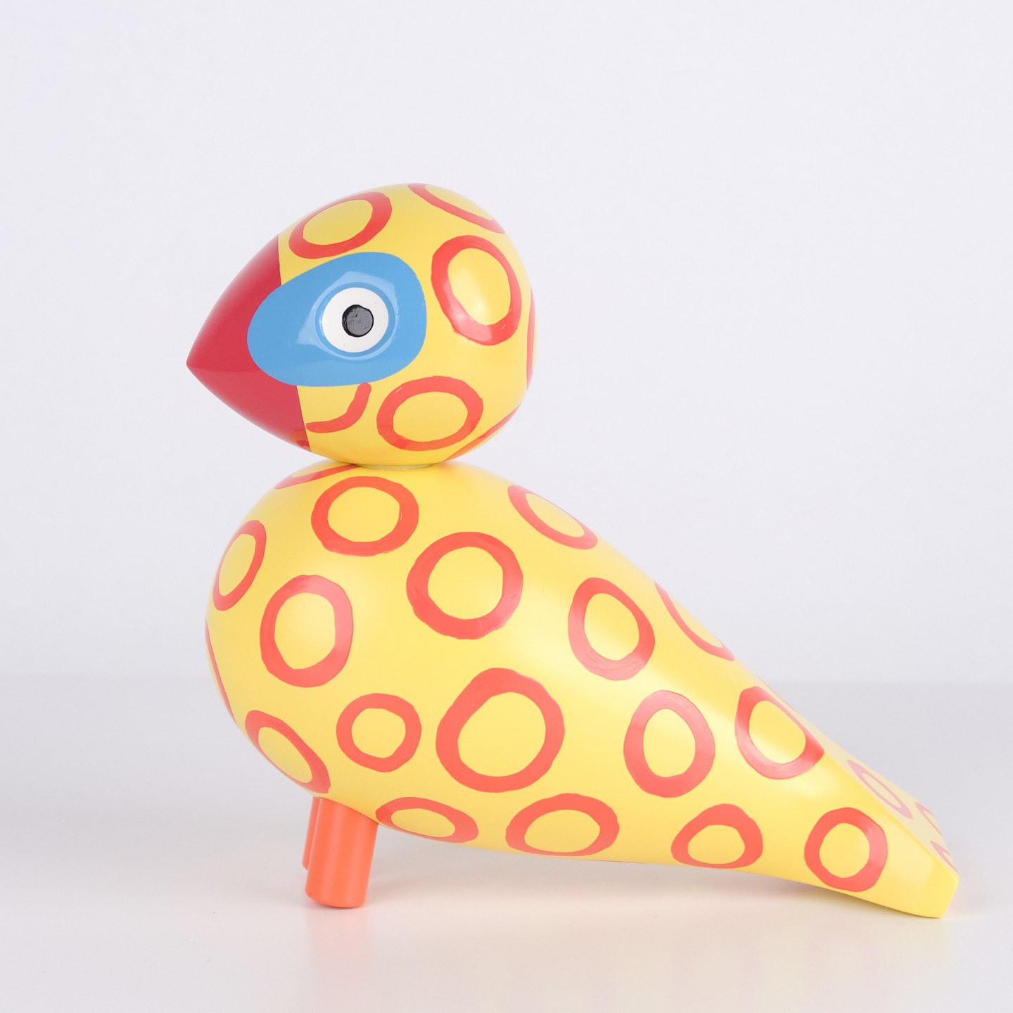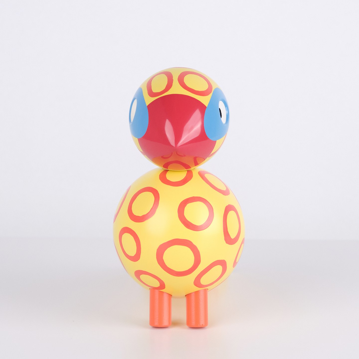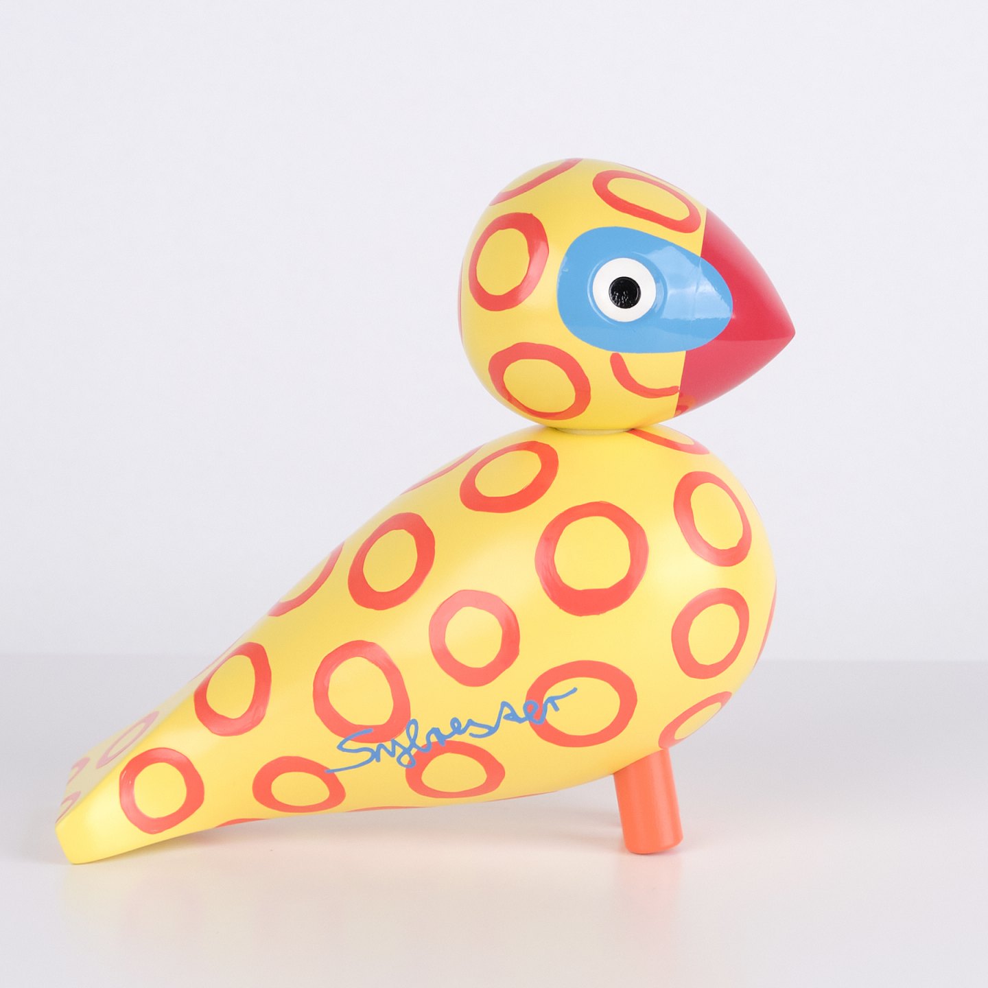 Singvogel Blue Eyes entstanden als Zusammenarbeit zwischen Kay Bojesen und Leif Sylvester. Die Figur ist aus bemaltem Holz mit mehrfarbiger Dekoration und Blue Eyes Motiv gefertigt. Die Serie führt Kay Bojesens bekannte Holzfiguren weiter und verbindet klassisches dänisches Design mit dem farbenfrohen Universum von Leif Sylvester. Ein dekoratives Sammlerstück und ein schönes Beispiel moderner Interpretation dänischer Designtradition.