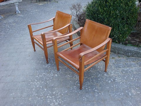 Two safarichairs in brown leather in very good condition .Price for a couple 3200 dkr