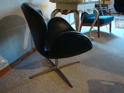 Swan by Arne Jacobsen in black leather in perfect condition 5000 m2 showroom
