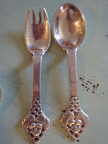 SolgtBørnebestik i ægte sølv. Mange andre mønstre haves på lager.