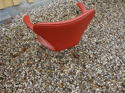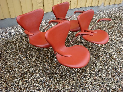 Sold2 Arne Jacobsen chairs with armrests model 3107 in red leather 5000 m2 showroom