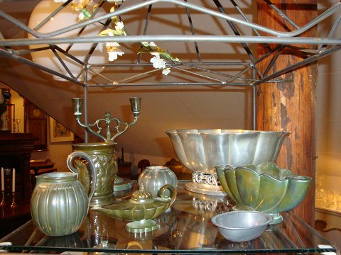 SoldRoyal Copenhagen stoneware dish, no.: 21941, by Jørgen Mogensen. The dish is decorated with a bird motif and in brown colors.
