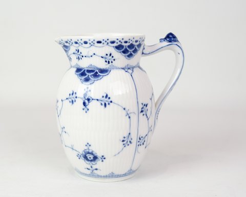 Half-moon dish marked 1/559 from Royal Copenhagen. Made of porcelain with blue-fluted half-lace design. The dish is hand-painted in blue decoration.