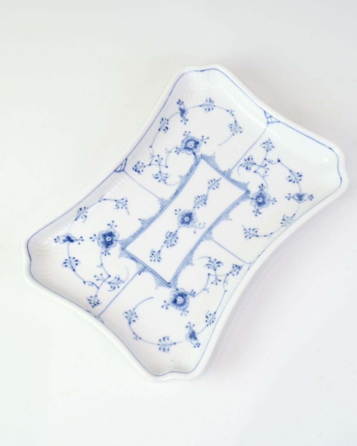 Elegant tray from Royal Copenhagen in the classic blue-fluted fluted frame, designed by Arnold Krog. Made of hand-painted porcelain with blue decoration and the characteristic fluted surface. The model is No. 1/269 and appears in 1st grade.
