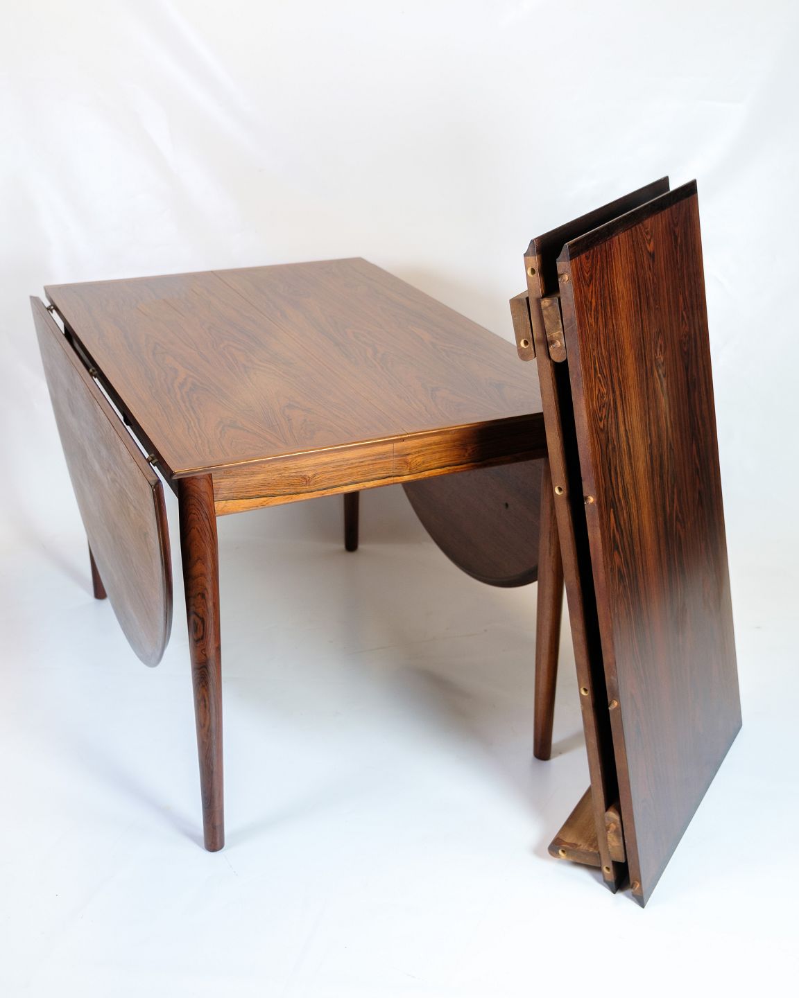 Esstisch mit Klappen und Auszug aus Palisander, entworfen von Arne Vodder, circa 1960er Jahre. Dänisches Design mit 2 Erweiterungsplatten.