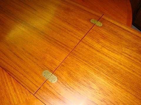 SolgtSpisebord i teaktræ med to udtræksplader tegnet af Børge Mogensen . Ø 140 cm i super kvalitet