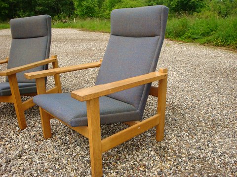 Resting chairs in oak with wool designed by Hans Wegner from Getama furniture factory 5000 m2 showroom