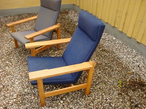 Resting chairs in oak with wool designed by Hans Wegner from Getama furniture factory 5000 m2 showroom