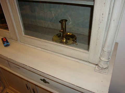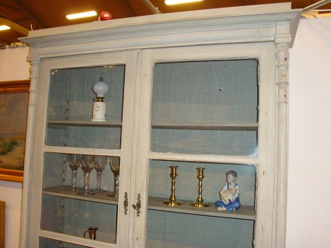 SolgtGlasvitrine grå malet Gustaviansk fra år 1850 i fin stand