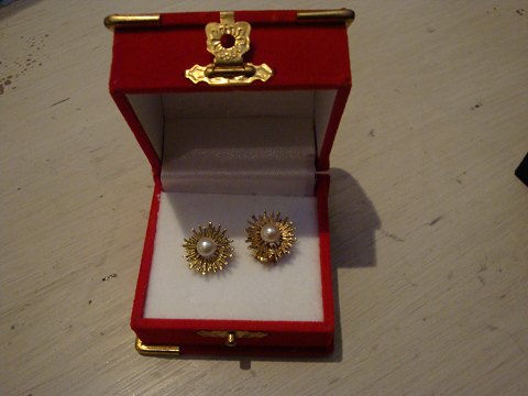 SoldEarrings in 14 kt with cultured pearl 5000 m2 showroom