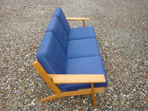SolgtSofa 3 pers model GE 290 i lys egetræ Designet af Hans Wegner med blå uldstof lavet på Getama møbel fabrik i fin stand